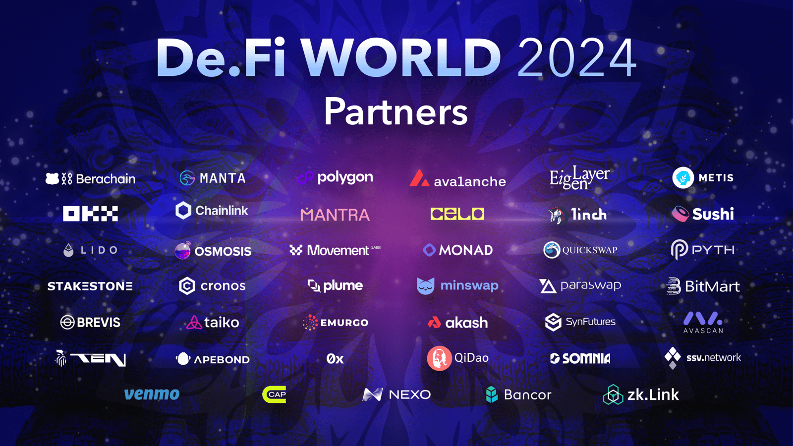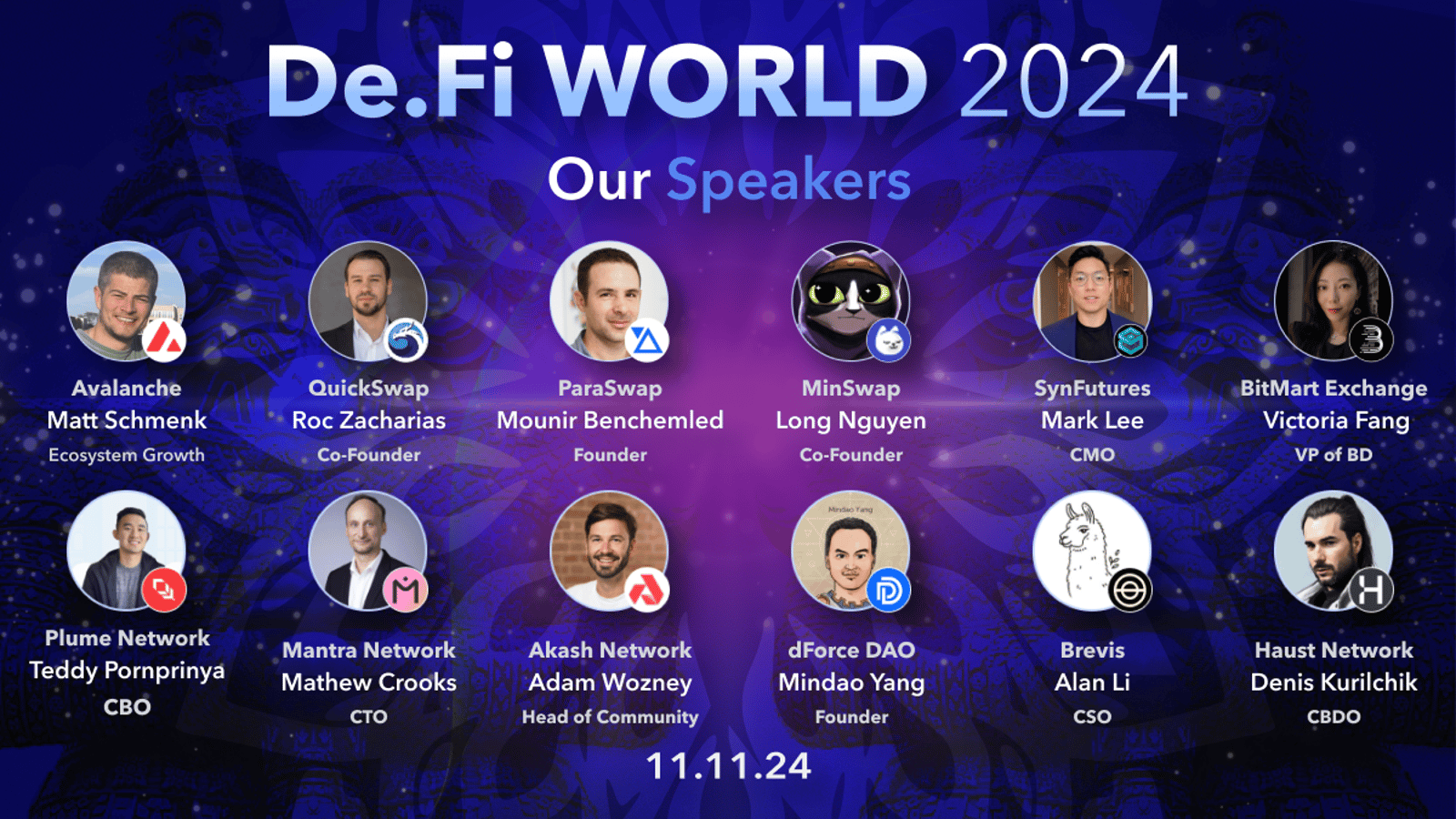 Meet the brightest minds in DeFi - leading DEXs, protocols, innovation chains, and security innovators are just some of the projects attending.