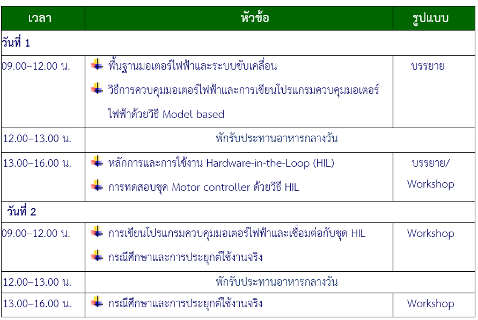 (รวมจำนวน 16 ชั่วโมง/2 วันทำการ)