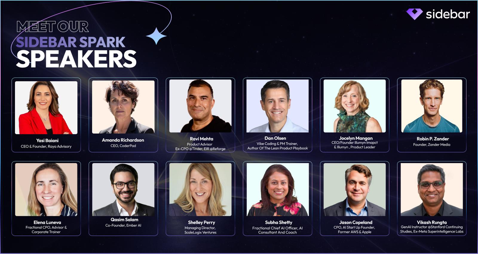 Sidebar Spark is a one-day executive event for senior leaders and founders navigating rapid change, rising expectations, and the accelerating impact of AI.