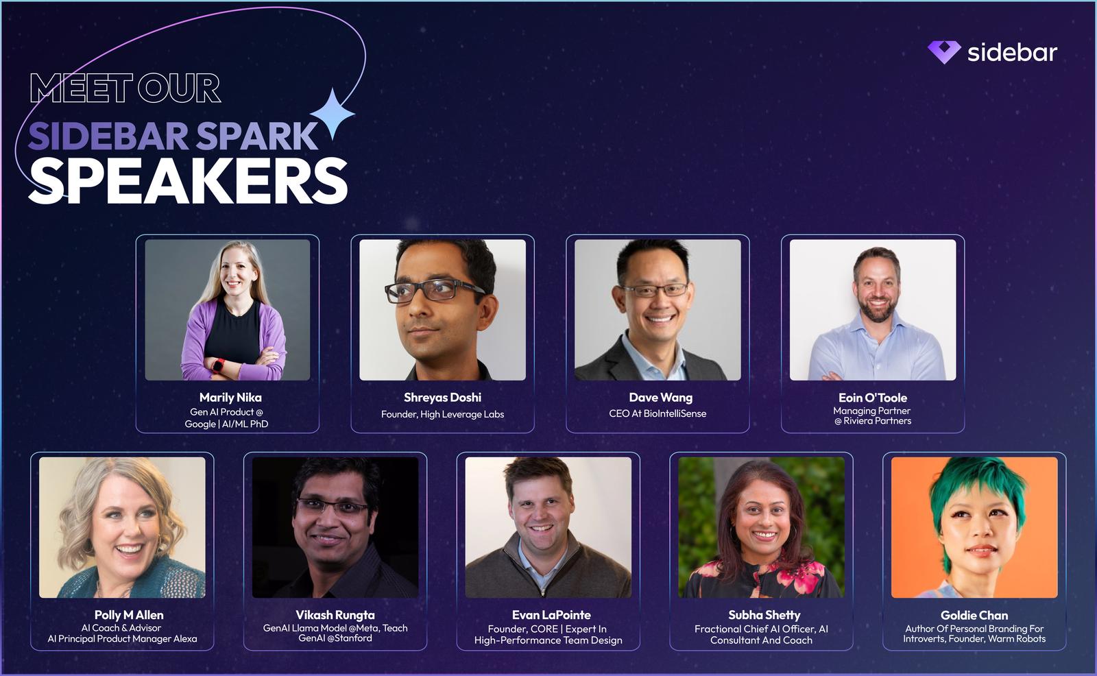 Sidebar Spark is a one-day executive event designed to bring senior leaders together for a day of inspiration, skill-building, and connection. Spark is about stepping out of the day-to-day and into a room of peers who understand the challenges of leadership today: scaling teams, navigating change, and making high-stakes decisions in a rapidly evolving world.