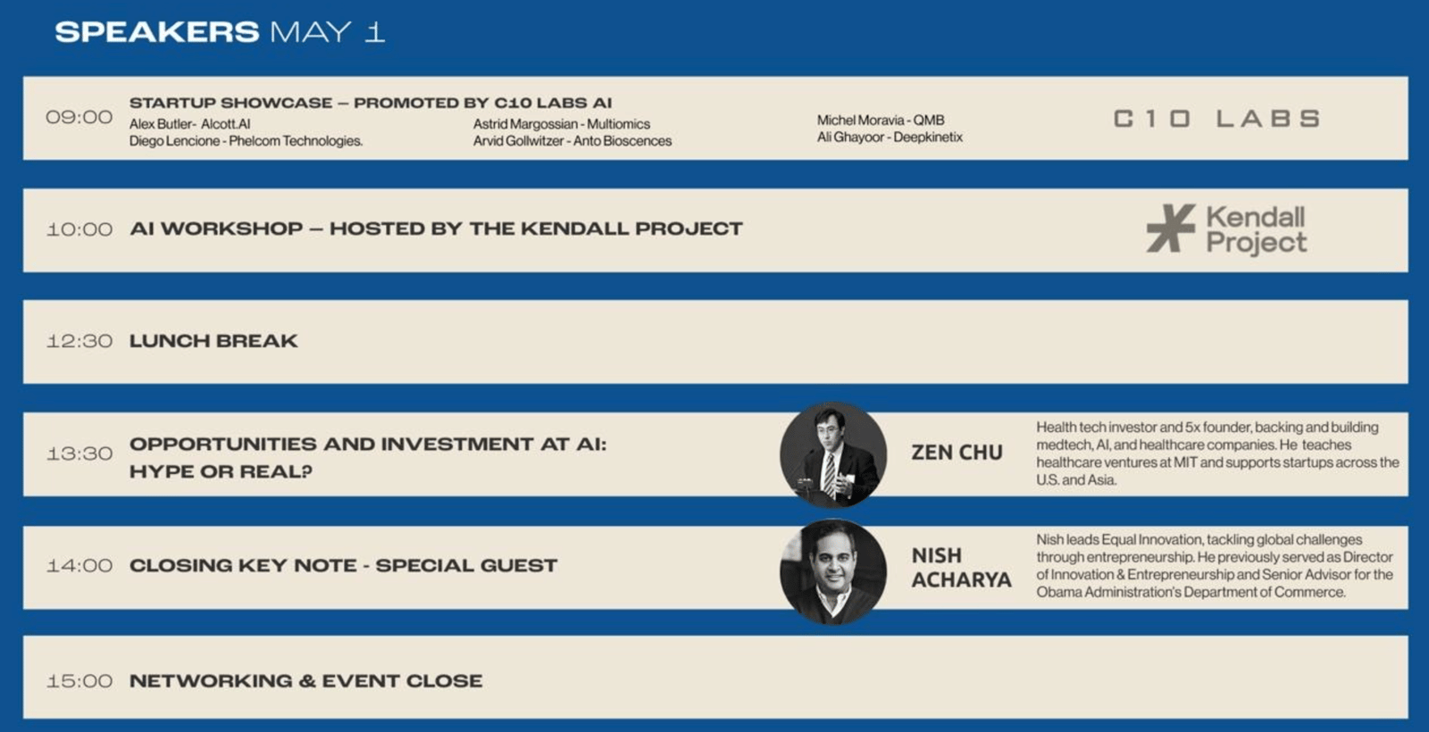 Programming is developed in collaboration with partners including C10 Labs, BALSA, and The Kendall Project, organizations that are actively shaping the region’s AI, startup, and healthcare innovation communities. Participants will engage with leading scientists, explore emerging startups, and examine the real world application of AI across medicine.