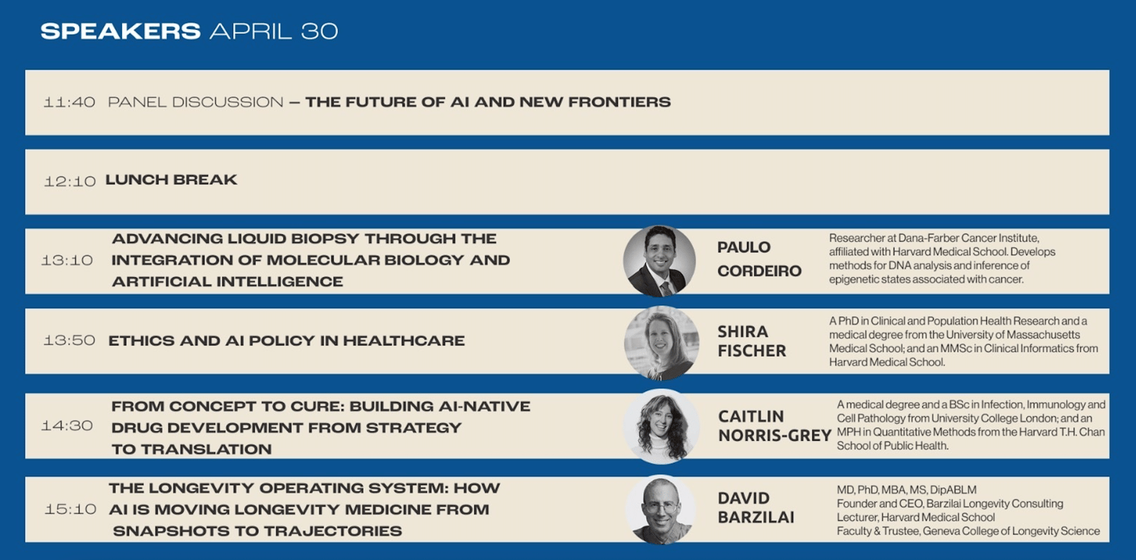 Across the two days, attendees will gain both strategic perspective and practical skills. Topics range from genetic risk prediction and cancer care to large language models in biology, healthcare ethics, and AI driven diagnostics. The program also includes an applied workshop focused on prompt engineering and AI agents for healthcare use cases, allowing participants to experiment directly with emerging technologies.