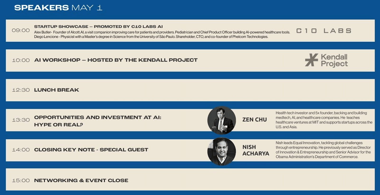 Programming is developed in collaboration with partners including C10 Labs, BALSA, and The Kendall Project, organizations that are actively shaping the region’s AI, startup, and healthcare innovation communities. Participants will engage with leading scientists, explore emerging startups, and examine the real world application of AI across medicine.