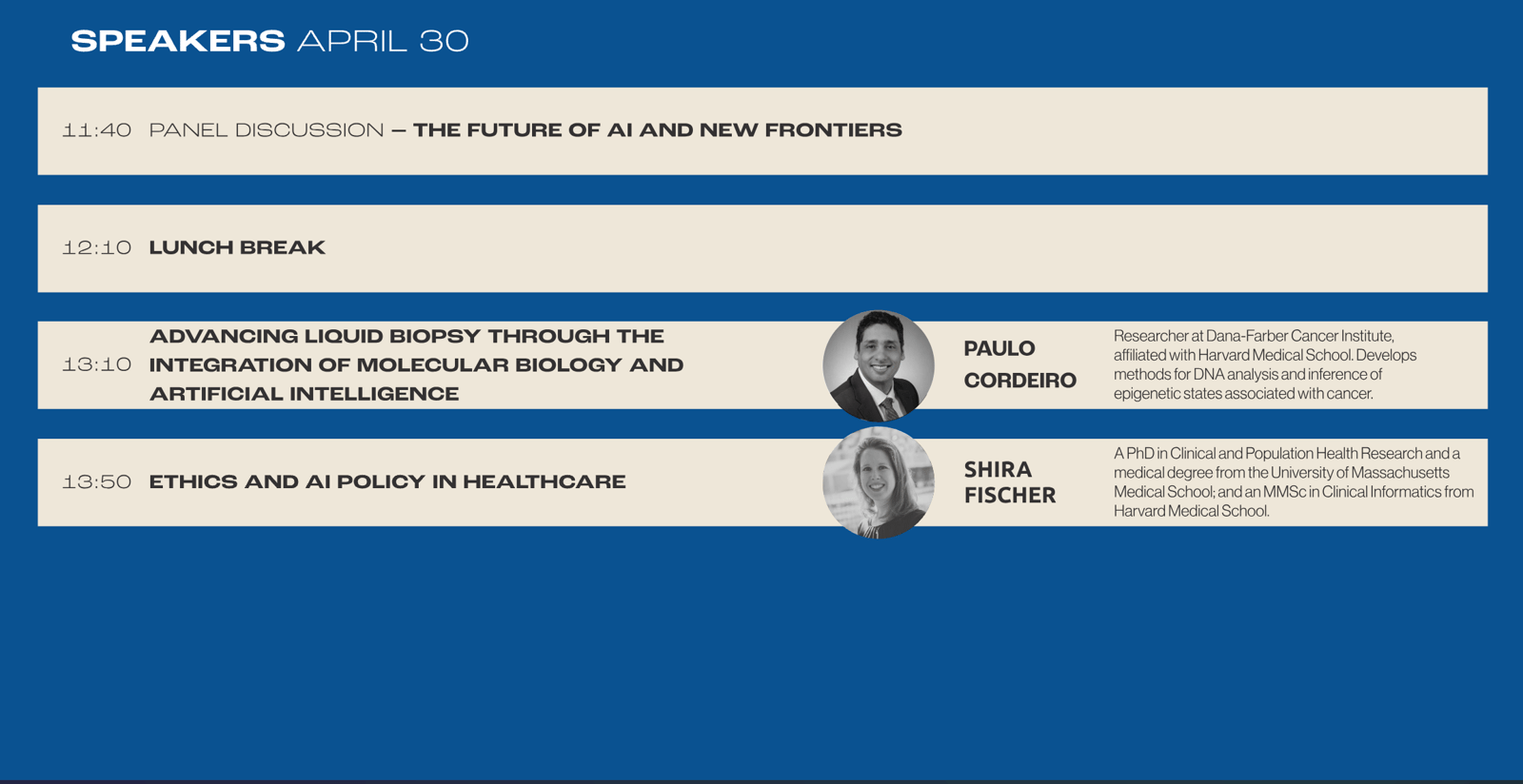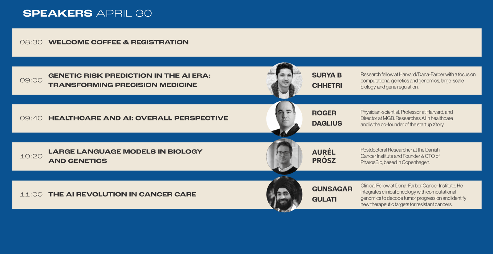 Across the two days, attendees will gain both strategic perspective and practical skills. Topics range from genetic risk prediction and cancer care to large language models in biology, healthcare ethics, and AI driven diagnostics. The program also includes an applied workshop focused on prompt engineering and AI agents for healthcare use cases, allowing participants to experiment directly with emerging technologies.