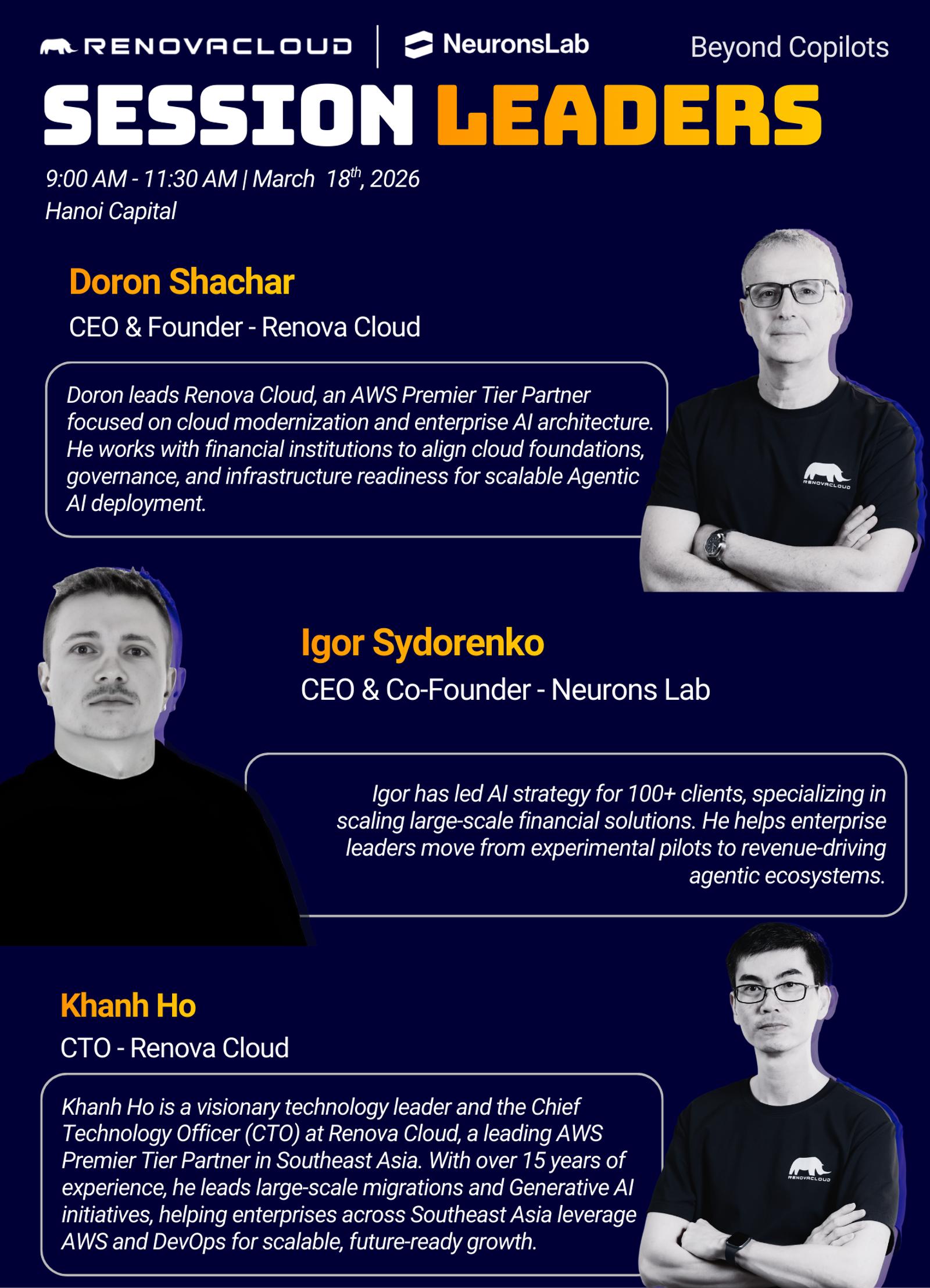 Hosted by Renova Cloud and Neurons Lab (AWS Partner), this curated roundtable is designed for CIOs, CTOs, Heads of Data/AI, and Innovation Leaders within Vietnam’s Banking and Financial Services sector.
