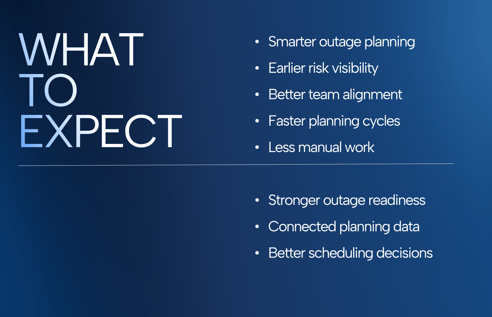 We will cover how to approach integrated outage planning for longer-term PO events — including how to manage multi-year outage schedules, align planning inputs across stakeholder groups, and use AI to reduce the coordination overhead that makes long-duration planned outages so difficult to execute cleanly.