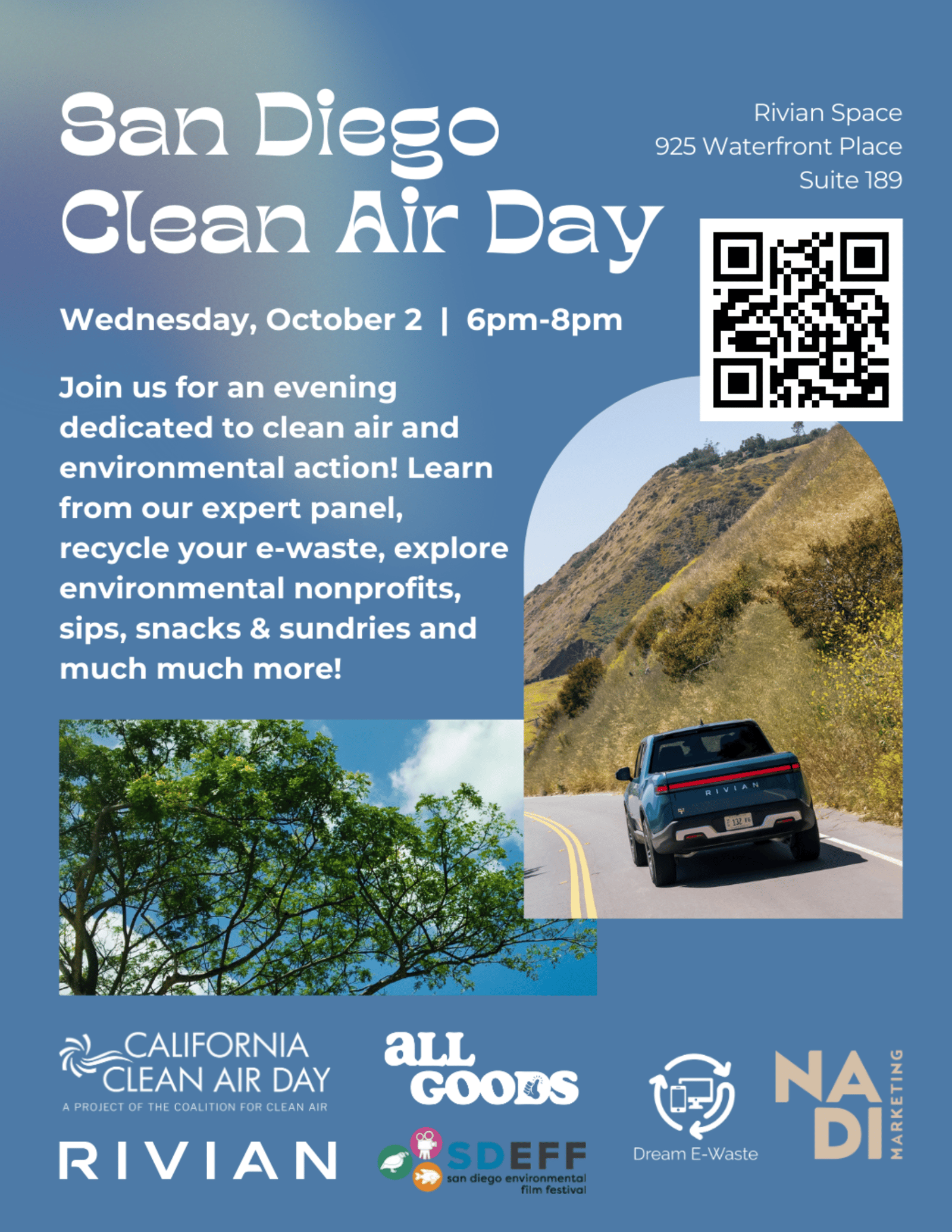 Remember, clean air isn't just an "environmental issue" – it's a community issue. Your voice, your actions, and your presence matter. Join us for an evening of learning, sharing, and taking those first steps toward a fresher San Diego – together!