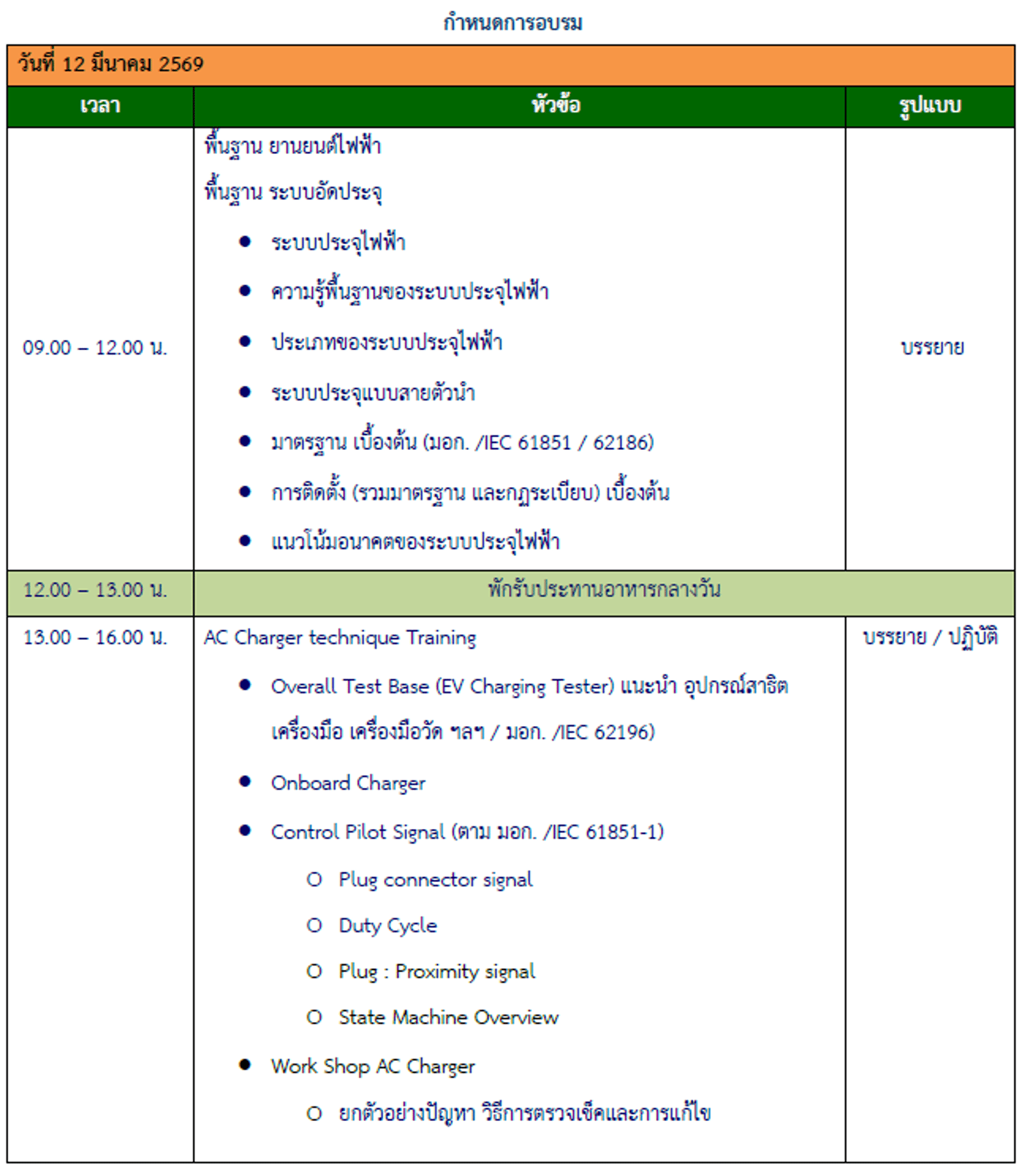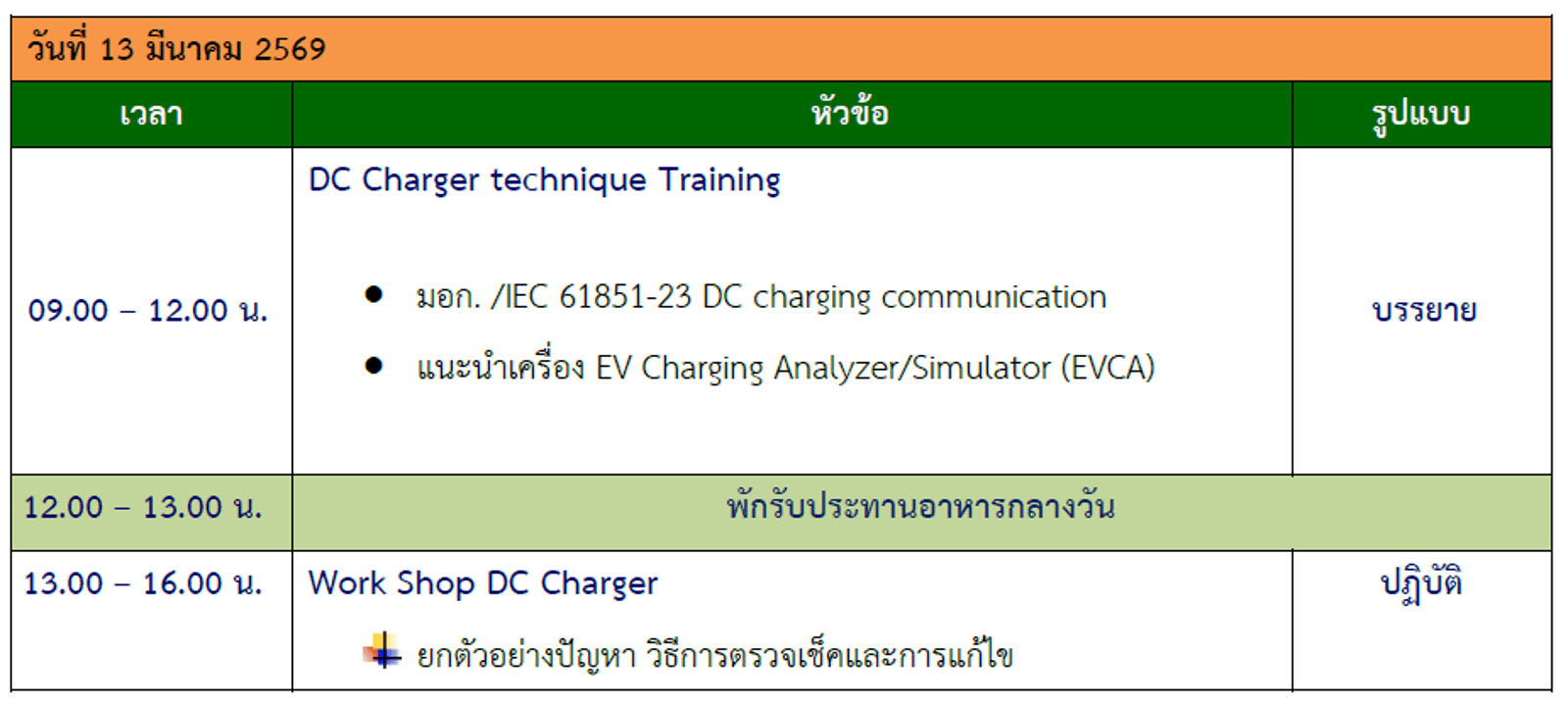 EV-2 : หลักสูตรอบรม การทดสอบและวิเคราะห์ระบบอัดประจุไฟฟ้าทั้งแบบ AC และ DC (วันที่ 12-13 มีนาคม 2569)
