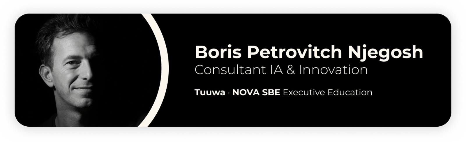 « Moi & l'IA » c'est une expérience immersive d'une heure où Boris Petrovitch Njegosh, expert IA, formateur pour NOVA SBE Executive Education, vous embarque dans son quotidien augmenté par l'intelligence artificielle. De la gestion d'un litige avec un loueur de voiture en Croatie grâce à un agent juridique IA, à la rédaction d'emails par la voix, en passant par la préparation d'un rendez-vous médical ou la construction d'un cerveau IA pour piloter un projet professionnel.