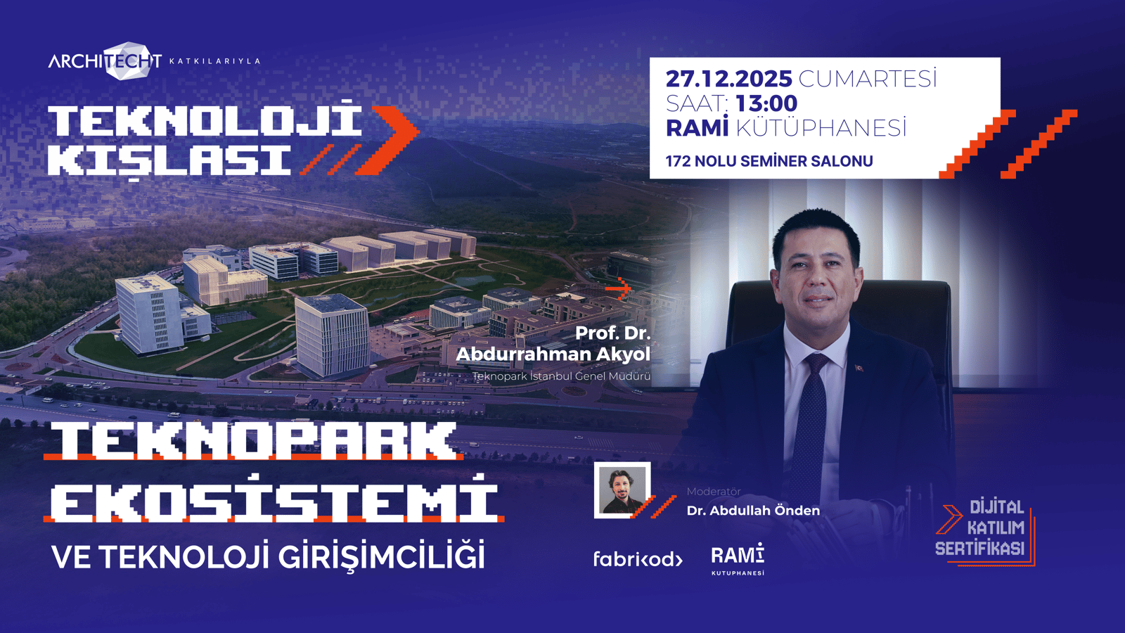 Dr. Abdullah Önden moderatörlüğünde Teknopark İstanbul Genel Müdürü Prof. Dr. Abdurrahman Akyol ile birlikte, savunma sanayi devleri ile girişimcilik ekosistemini bir arada tutan dengeyi ele alacaklar.