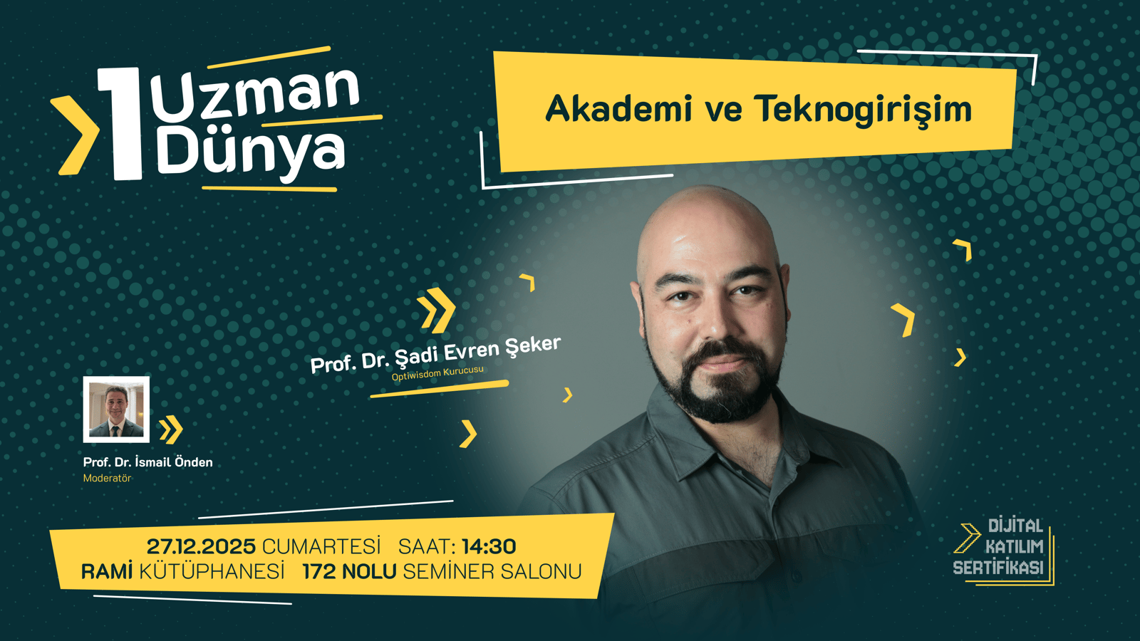 ​​“1 Uzman 1 Dünya” programının üçüncü bölümünde, Optiwisdom Kurucusu Prof. Dr. Şadi Evren Şeker'i, Prof. Dr. İsmail Önden moderatörlüğünde ağırlıyoruz.