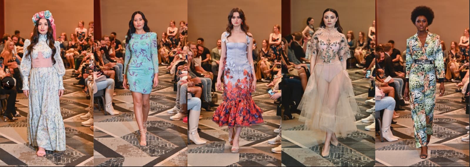 The fashion show is featuring exquisite local and international designer collections, exhibited by stunning models on the runway.