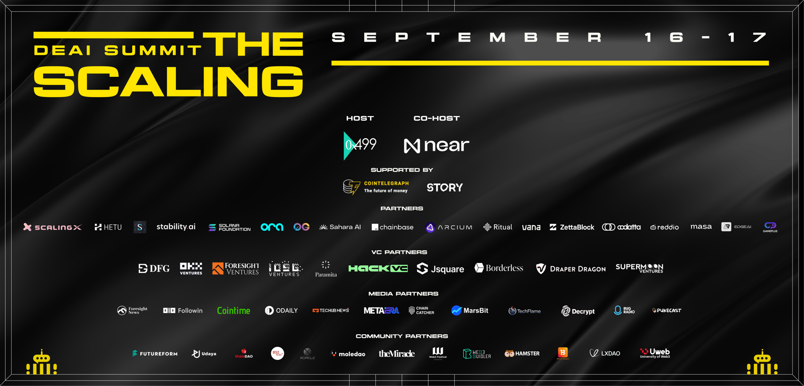 Partners: Scalingx, HETU, Schelling AI, Stability.ai, Solana Foundation, ORA, 0G, Sahara AI, Ritual, EdgeAI, ZettaBlock, Chainbase, Arcium, Codatta, Masa, Supermoon, Vana, Game Plus