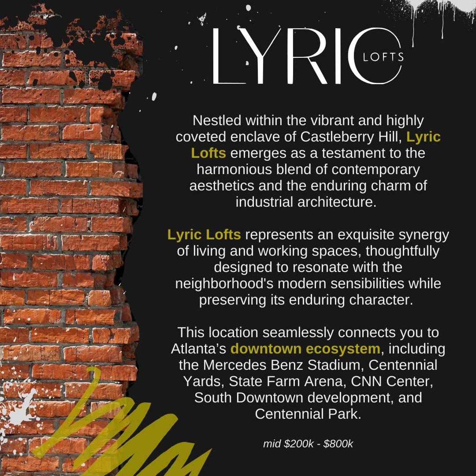 Join Ericka Mitchell Real Estate Group, Compass Development Marketing Group, The Luxe List Atlanta, and other industry professionals for the Grand Opening of Lyric Lofts in Castleberry Hills.
