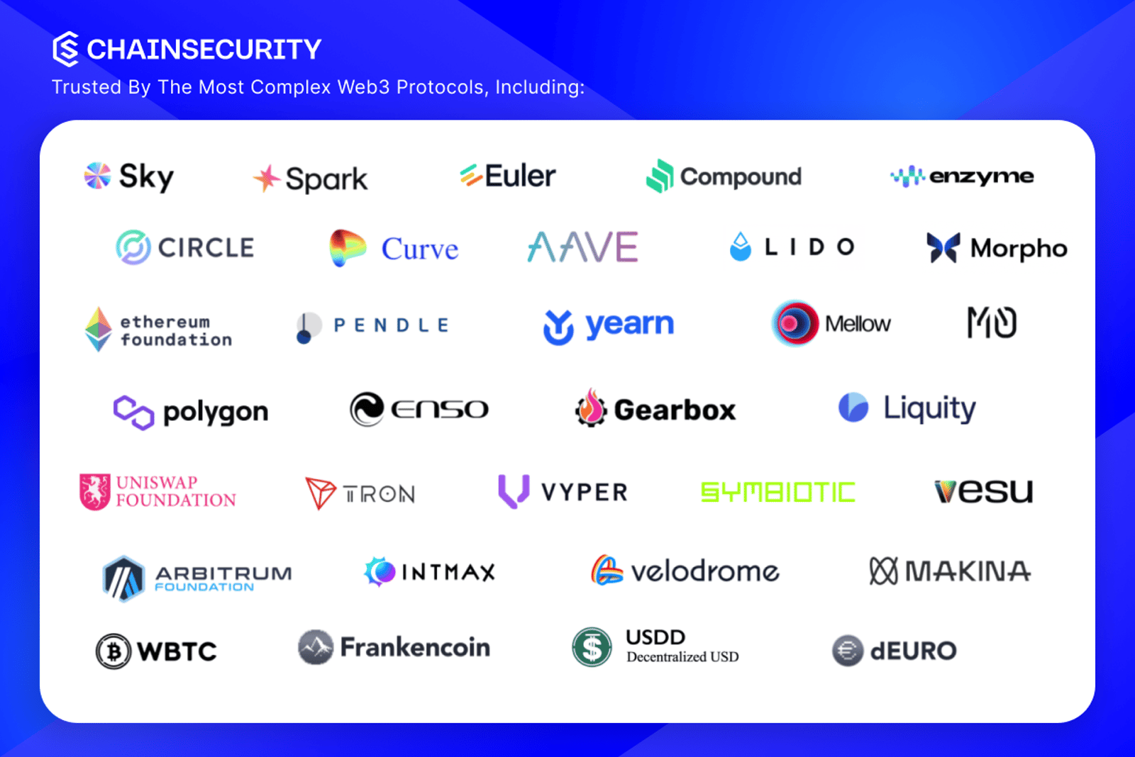 Since 2017, ChainSecurity works with top-tier DeFi protocols, research institutions, central banks, and large organizations, providing smart contract audit and security consulting services.