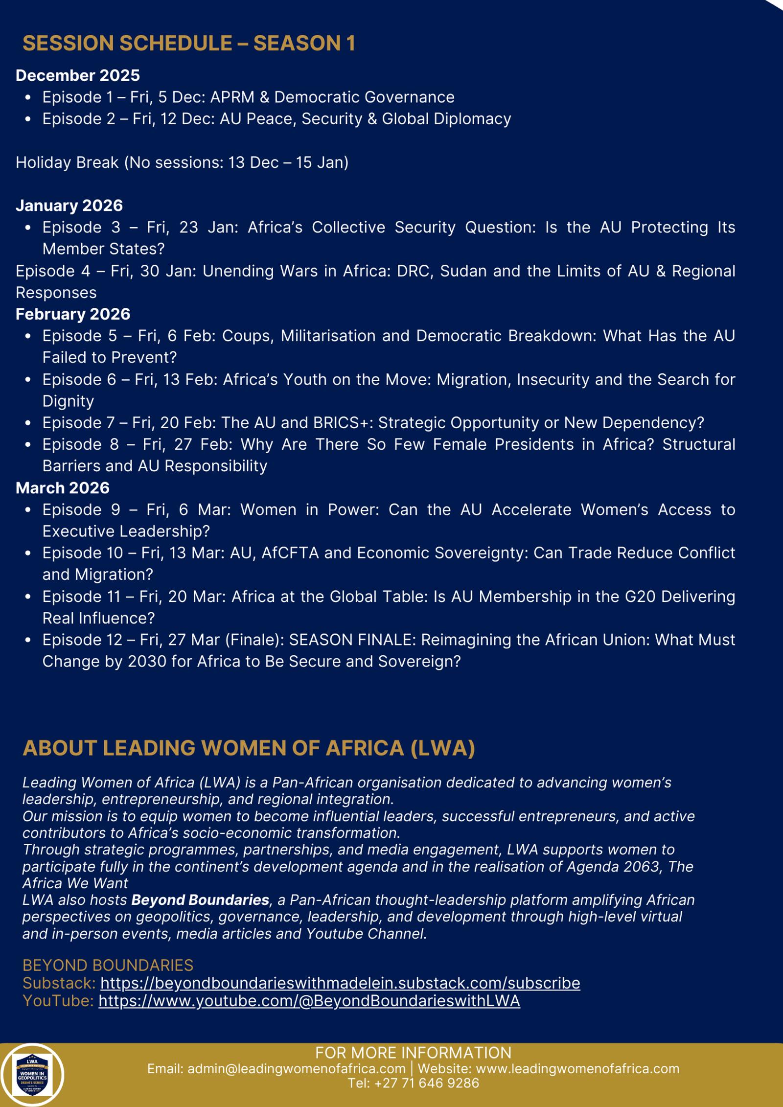 SEASON 1 THEME (Dec 2025 – Mar 2026) : “The African Union at a Crossroads: Power, Reform & Africa’s Global Future