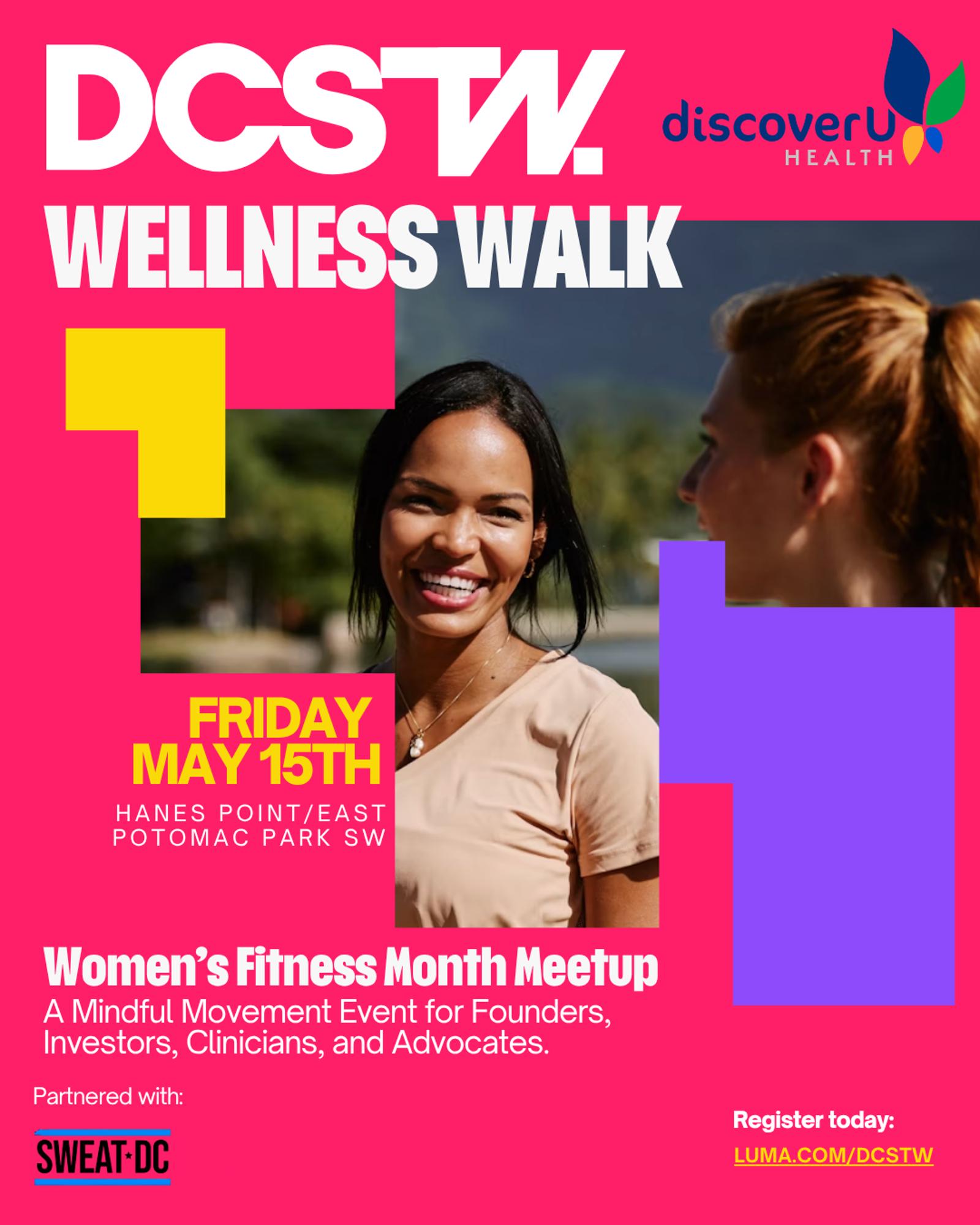 Partners: Powered by DCSTW and DiscoverU Health, with community support from Sweat DC, Tech Wellness Society, and Zen Joy.