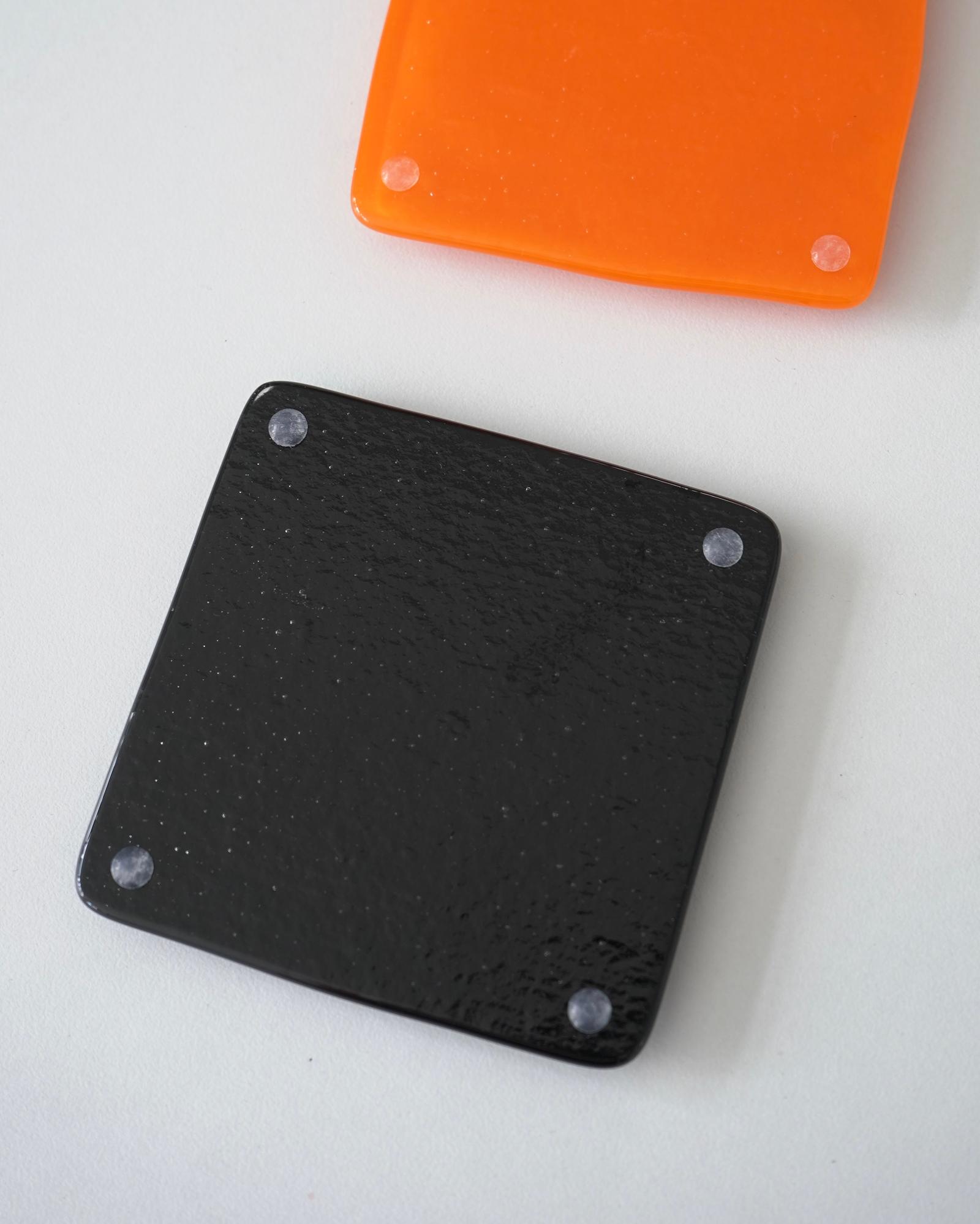 3.5 in x 3.5 in glass coaster, backed with 4 non-slip bumpers