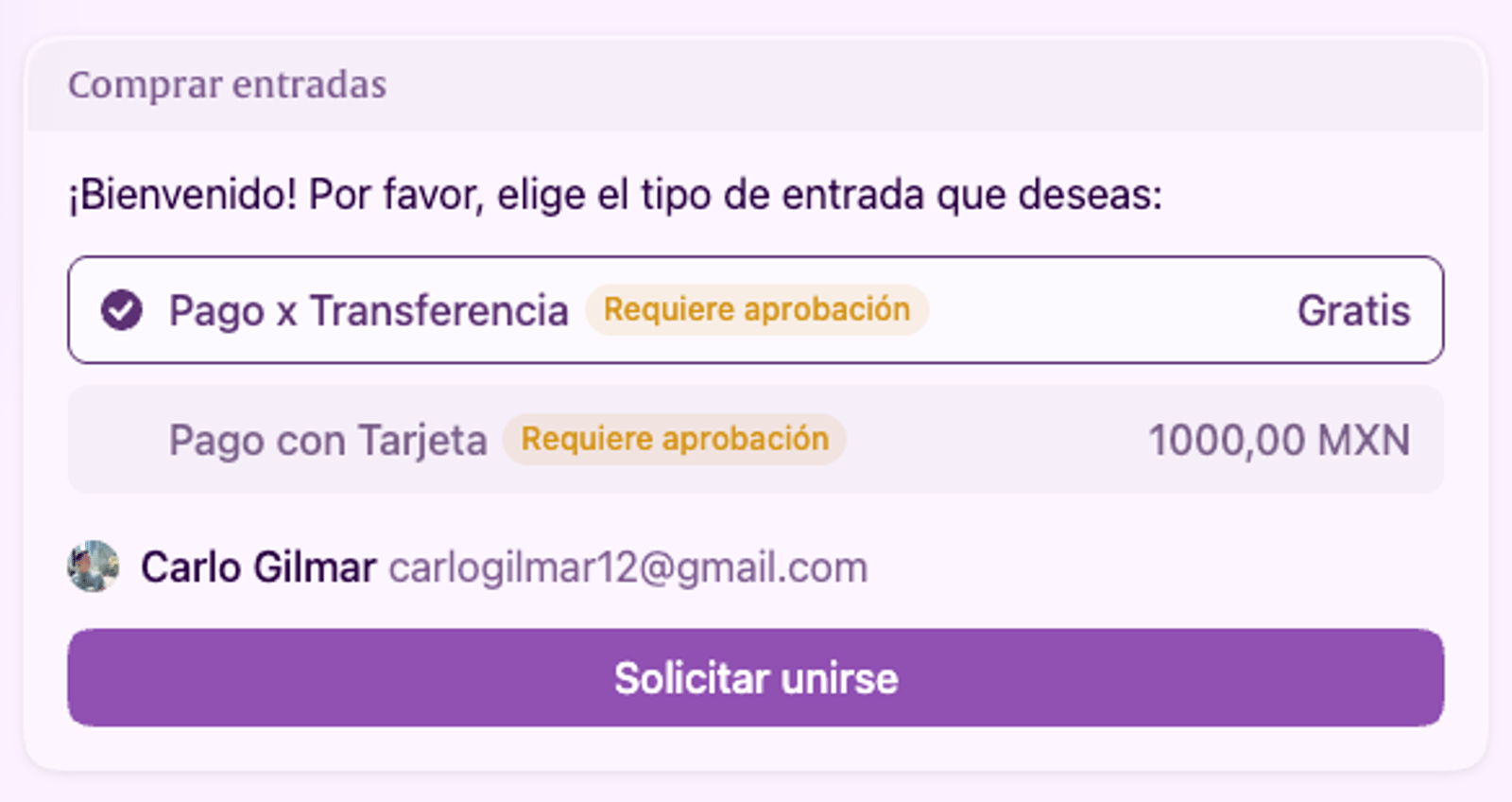 Si eliges la opción de pago por transferencia te llegará un correo con los detalles de la cuenta bancaria. Si deseas pagar con tarjeta, puedes hacerlo en la opción de pago con tarjeta.