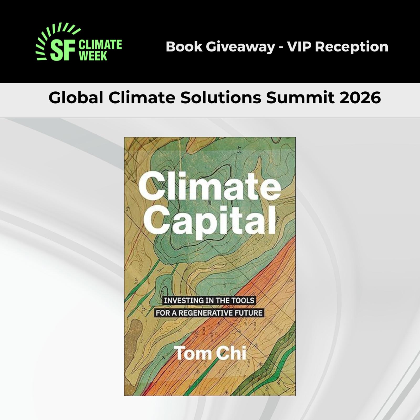 VIP Reception Giveaway: Tom Chi's new book Climate Capital is going to the first 30 people that register for the VIP Reception.
