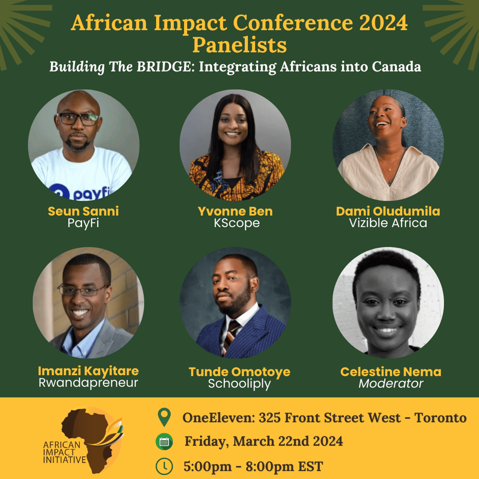 This year’s theme is Sanyiya, which means “mobilize” in the Chagga dialect from Tanzania. Attendees will engage through interactive panels; and learn about tailored solutions to their most pressing challenges as African immigrants in Canada. They will also leave with access to tailored scholarships, financial aid solutions, job opportunities and resources exclusively created for them as part of the African Impact BRIDGE Program. The aim of this conference is to serve as a rallying cry for responsible resource management, by determining a roadmap for effective collaboration and exploring innovative solutions for our sustainable development as Africans in Diaspora.
