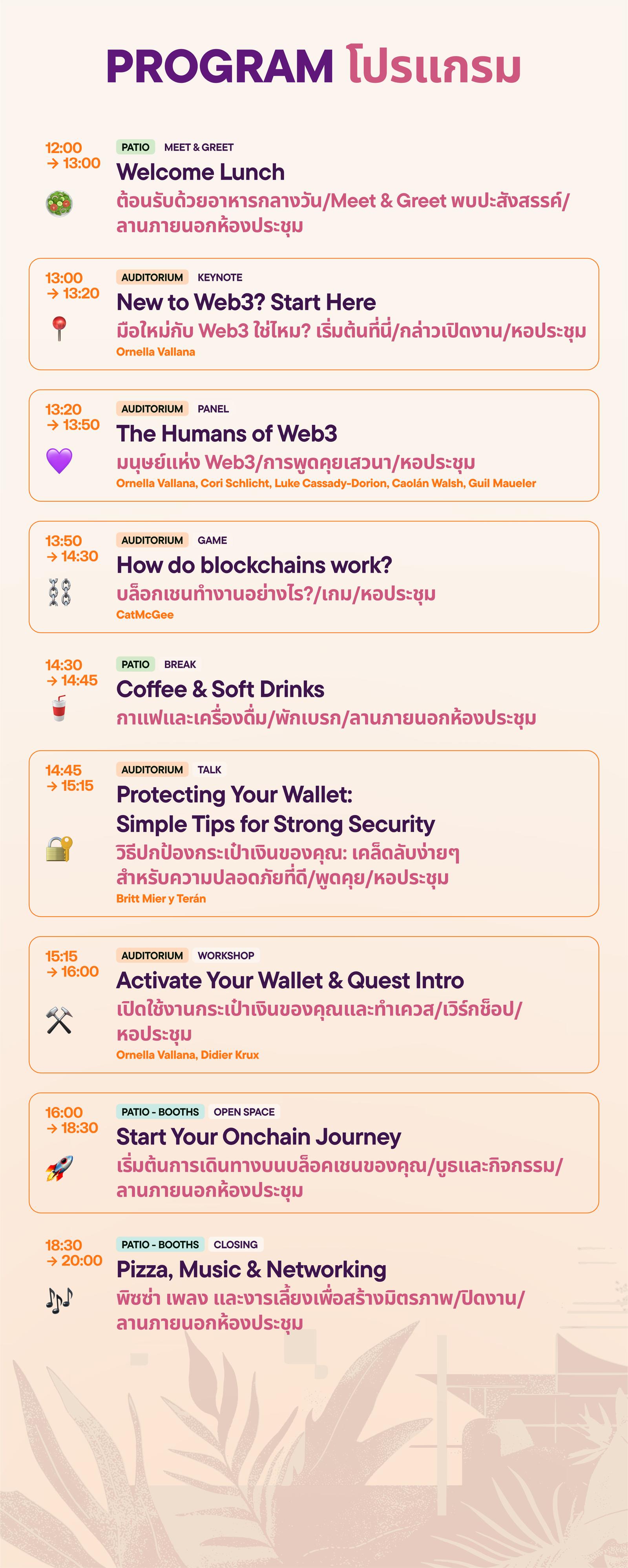 "เรียนรู้ Web 3 ที่นี่" เป็นกิจกรรมเต็มวันที่มีปฏิสัมพันธ์มากมาย มีจุดมุ่งหมายเพื่อช่วยให้คุณก้าวจาก 0 ไปสู่ 1 ใน Web3 ด้วยการสนับสนุนจาก Harpie.