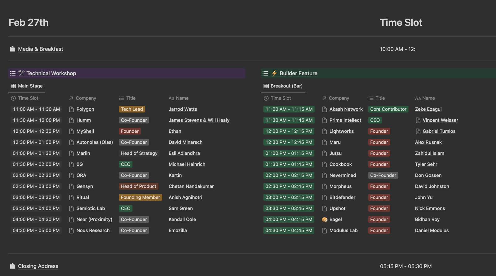 ​Day 1 Brainstorm Schedule: 2/26