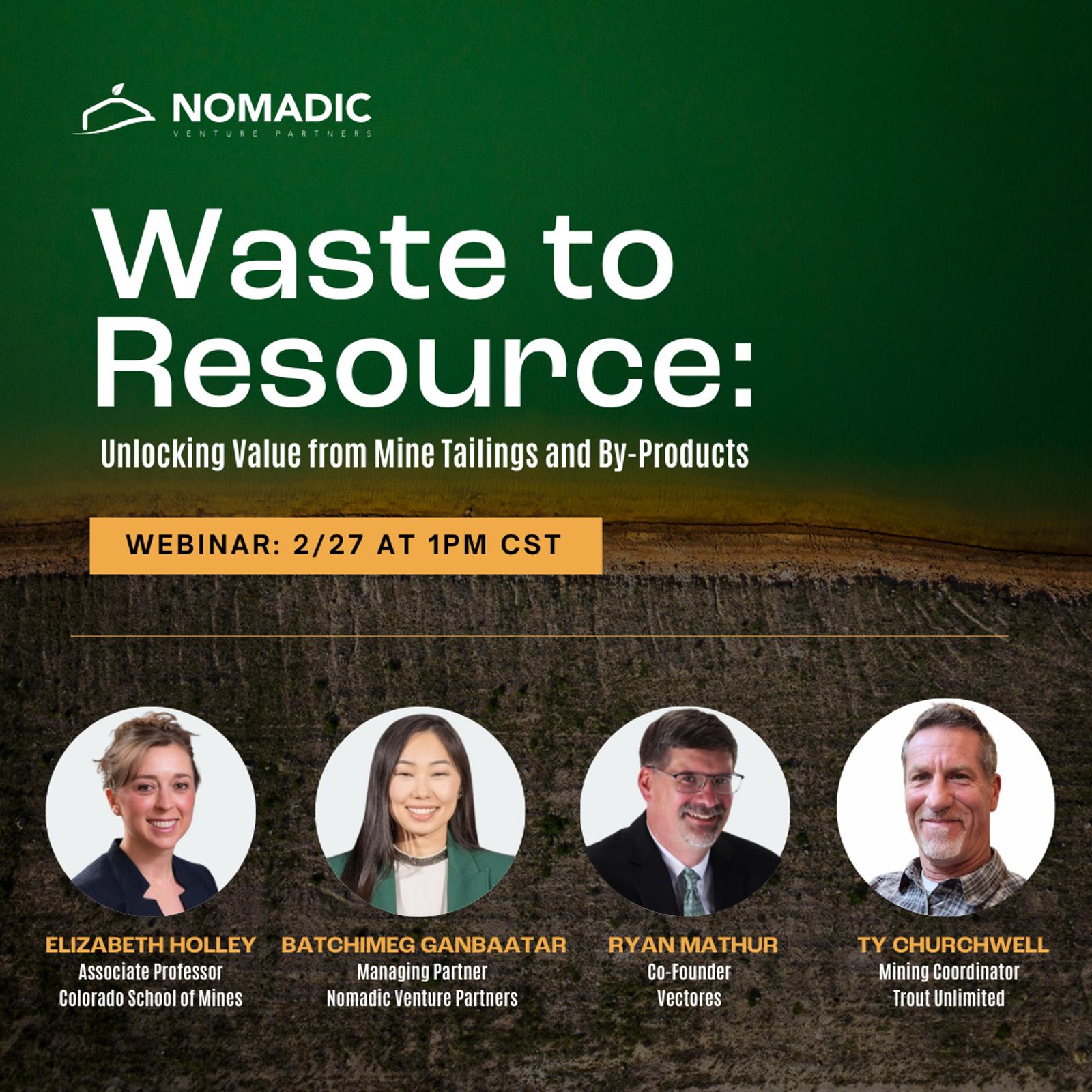 Nomadic Venture Partners is hosting a discussion on how transforming mine tailings and generating by-products can unlock new sources of critical minerals.