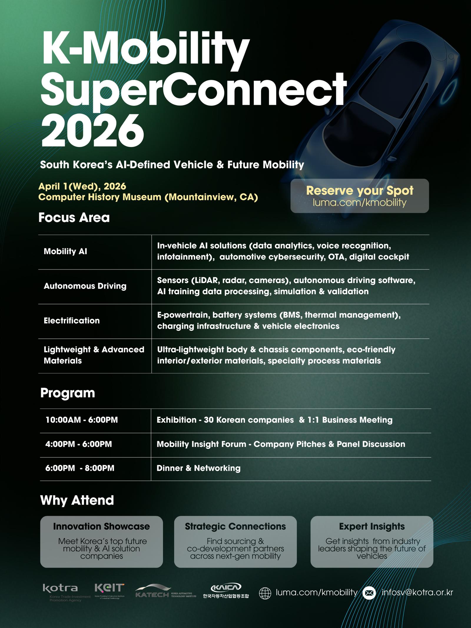 KOTRA returns to the U.S. with K-Mobility Superconnect, bringing Korea’s next-generation mobility technologies to industry leaders in Silicon Valley.