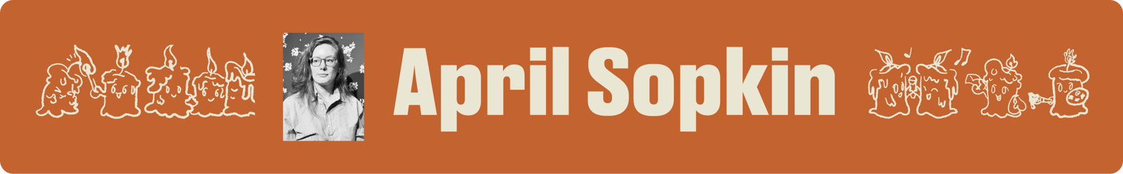 April Sopkin writes fiction and personal essays. She was the 2024-2025 writer-in-residence at the Visual Arts Center of Richmond, and was awarded a 2023 Elizabeth George Foundation grant to support work on her short story collection. Her writing has appeared in Joyland, MIT Technology Review, Carve, Southern Indiana Review, and elsewhere. April teaches writing and literature at VCU and Randolph-Macon College. She writes about pursuing a multifaceted life at Something Out of Nothing, her monthly blog.