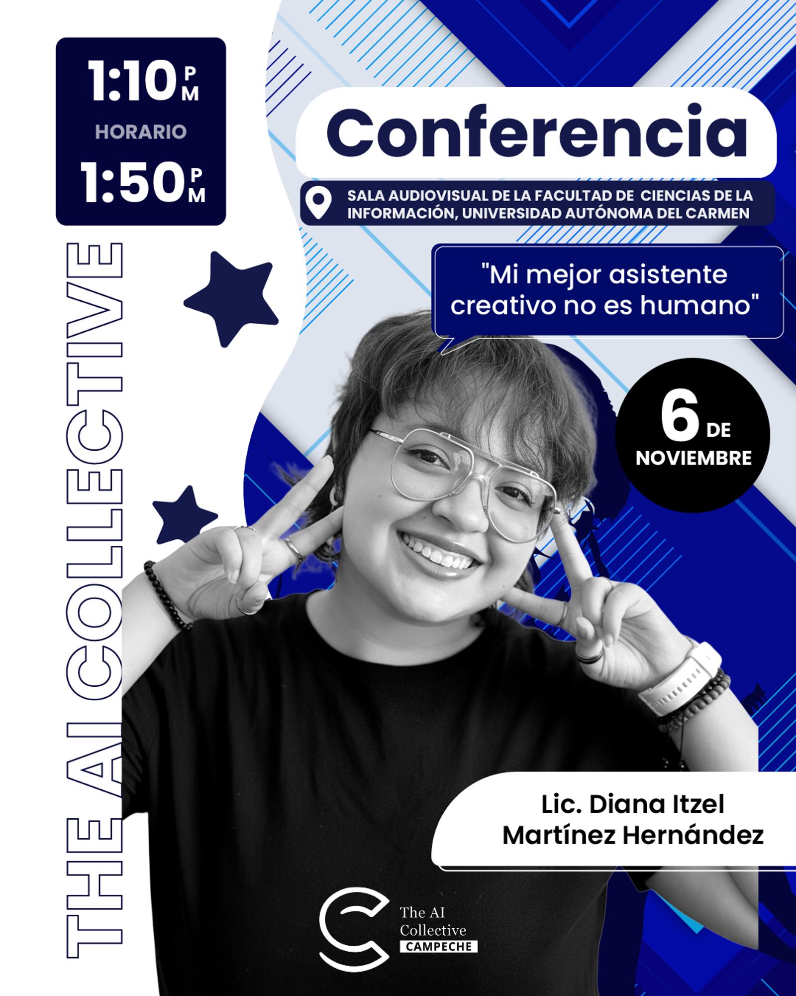 13:10 - 13:50 h: Conferencia: "Mi mejor asistente creativo no es humano" (Lic. Diana Itzel Martínez Hernández).