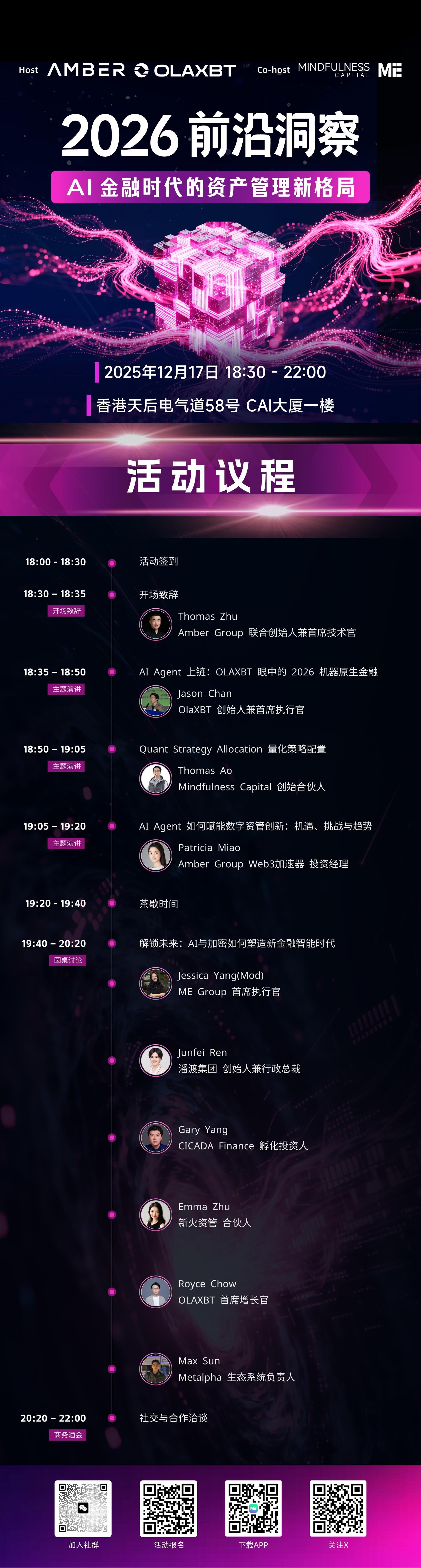 在加密金融与人工智能深度交汇的今天,资产管理正在经历从“量化策略”向“AI 代理”的范式转移。作为领导者,我们不再仅仅寻找更快的交易执行,而是在构建能够自我进化、自主决策的智能体生态。本次闭门会由 OlaXBT 发起,旨在探讨如何利用 强化学习(RL) 与 模型上下文协议(MCP),赋能新一代数字资产管理者,从被动应对市场波动转向主动驾驭链上 Alpha。