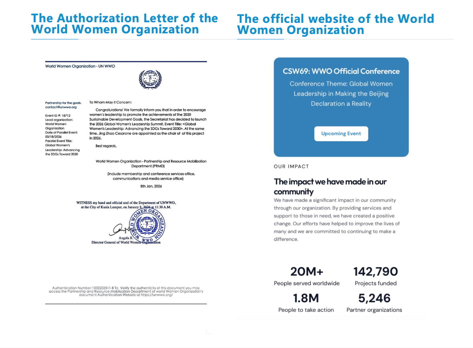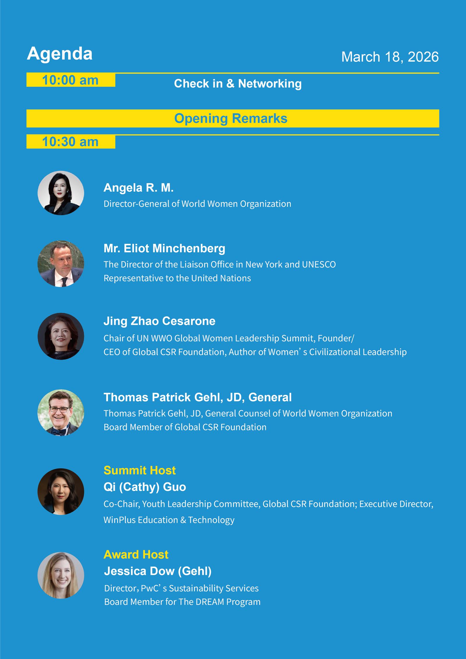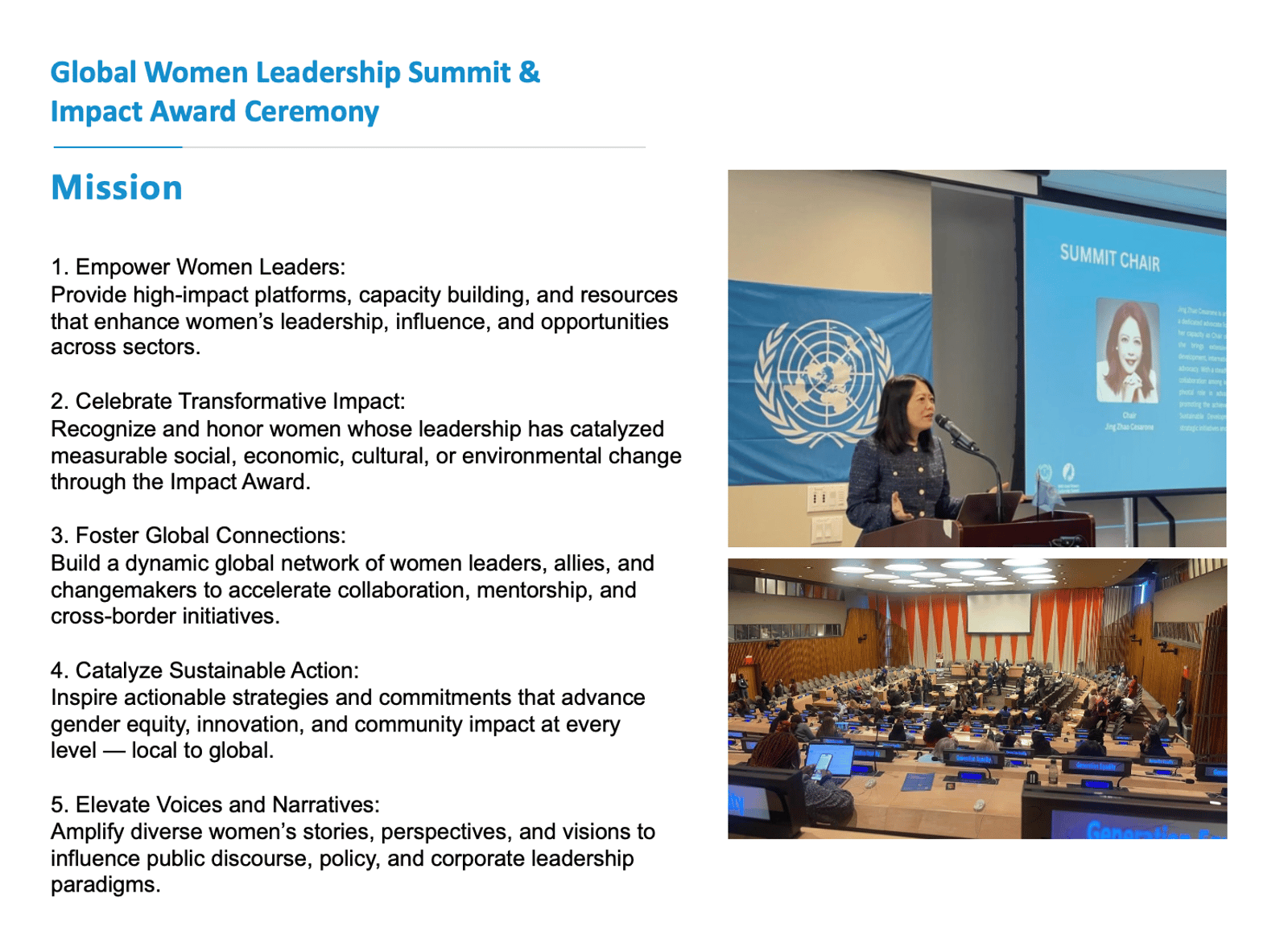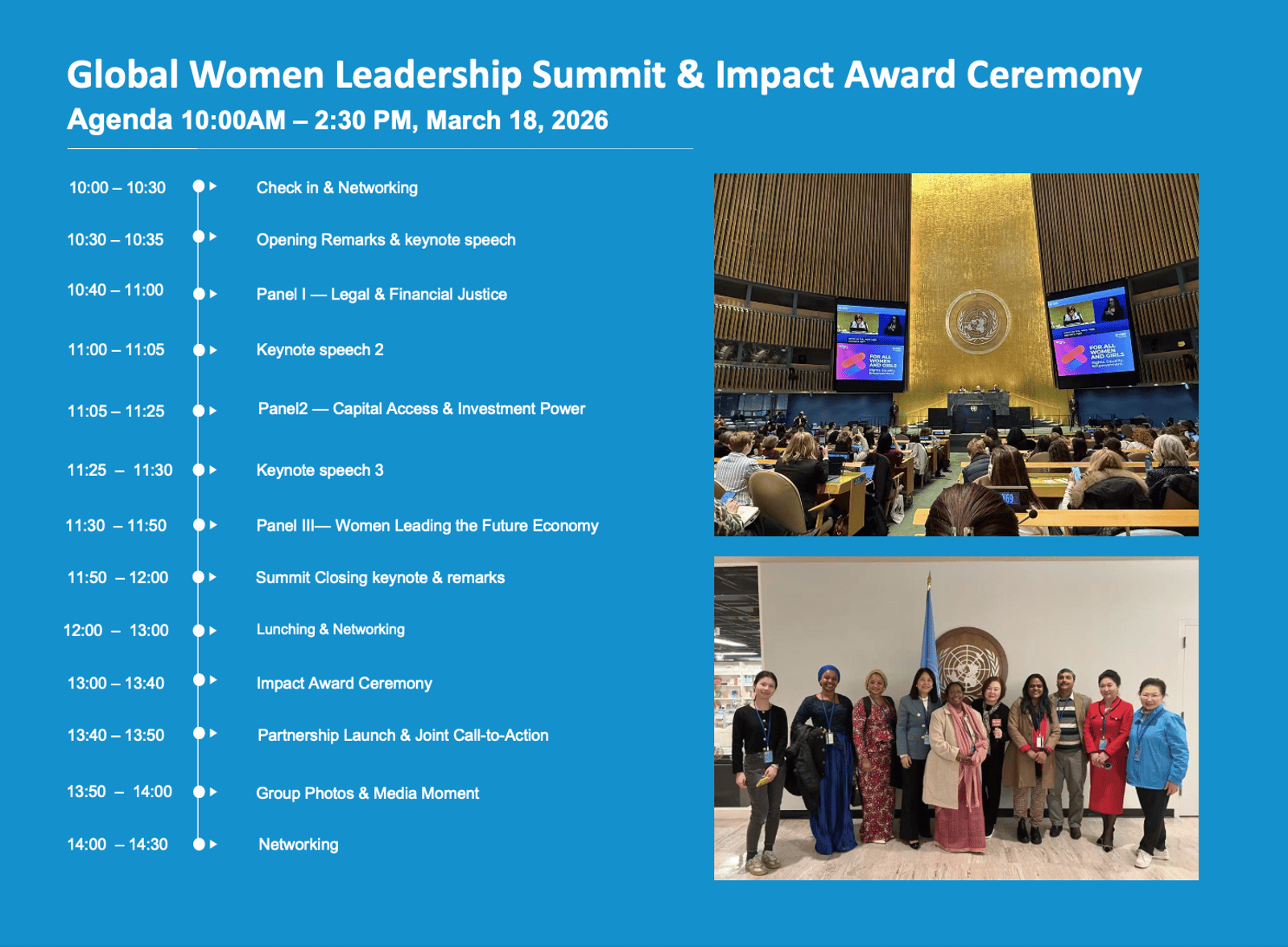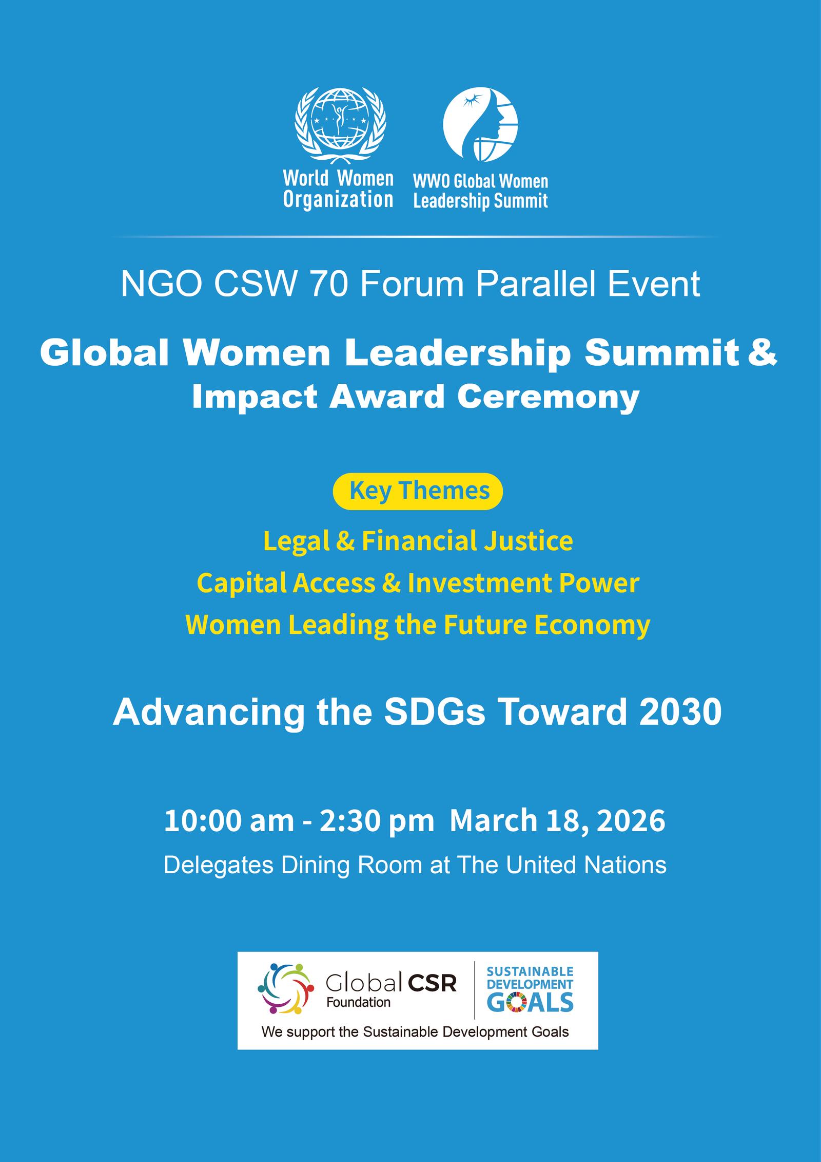 Held during the 70th Session of the Commission on the Status of Women (CSW70), the Global Women Leadership Summit & Impact Award Ceremony convenes global leaders, policymakers, entrepreneurs, investors, and youth changemakers to accelerate progress toward the Sustainable Development Goals (SDGs) by 2030.