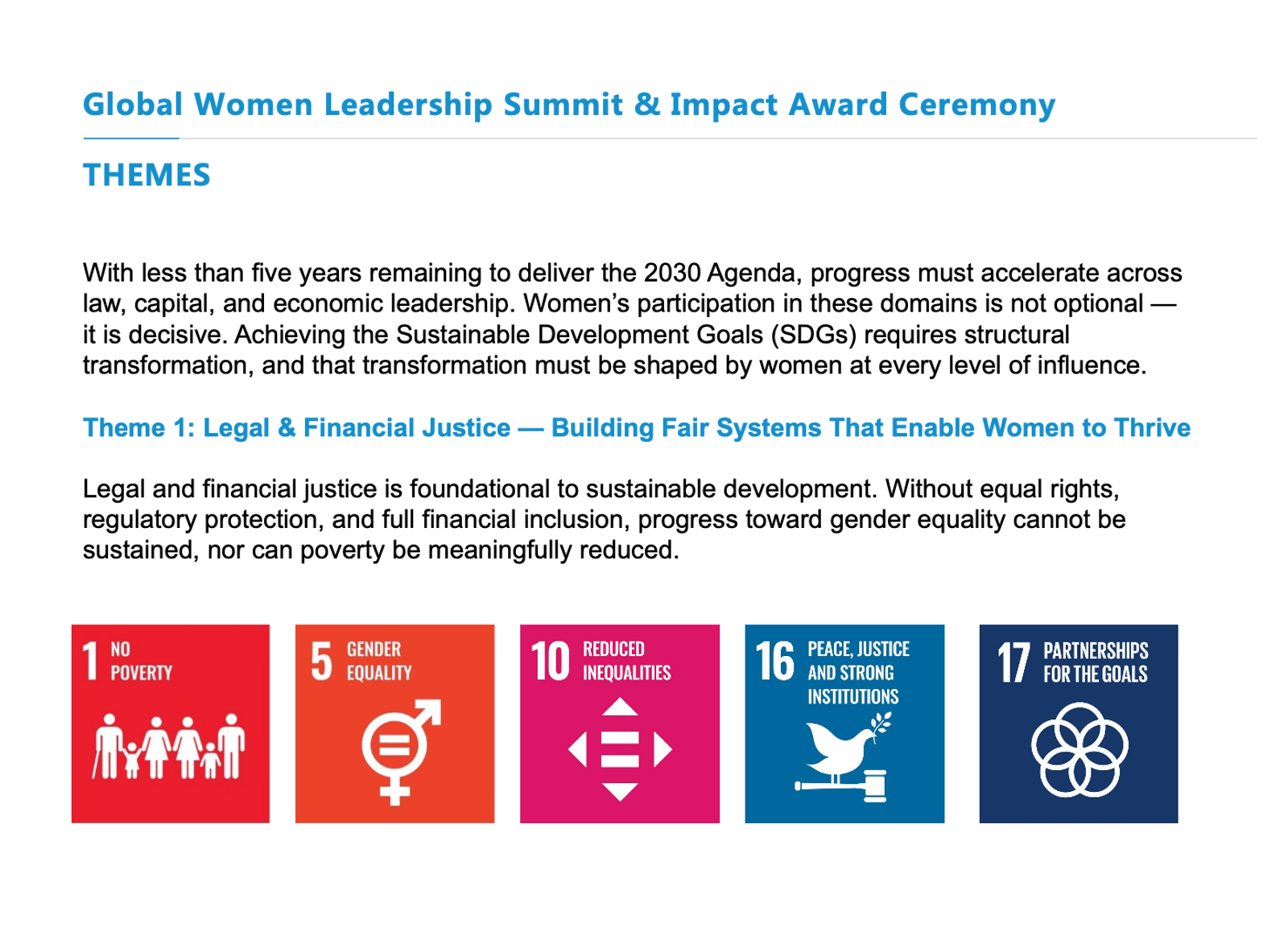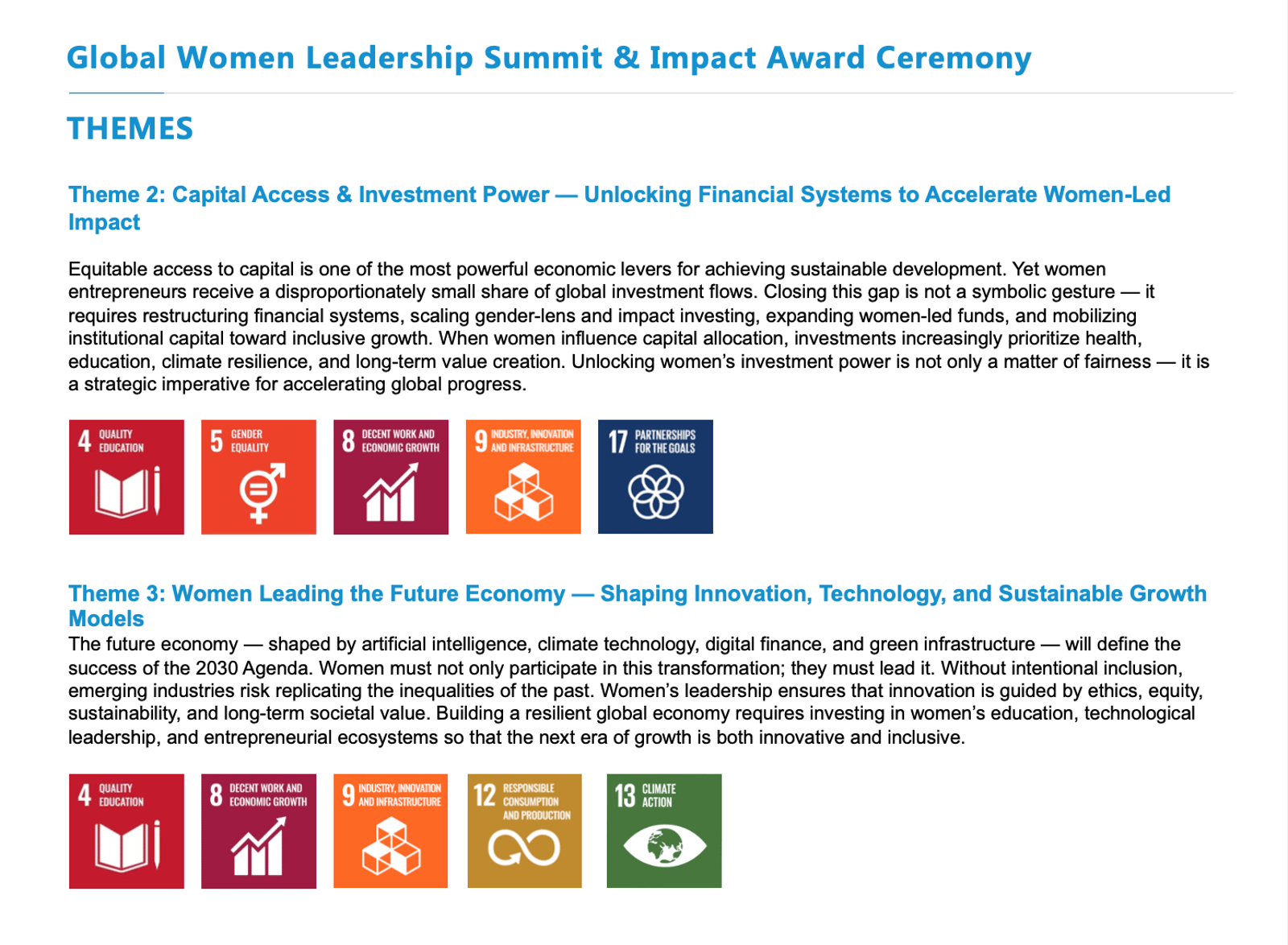 If you are committed to accelerating women’s leadership, unlocking capital, and advancing the SDGs toward 2030 — this Summit is for you