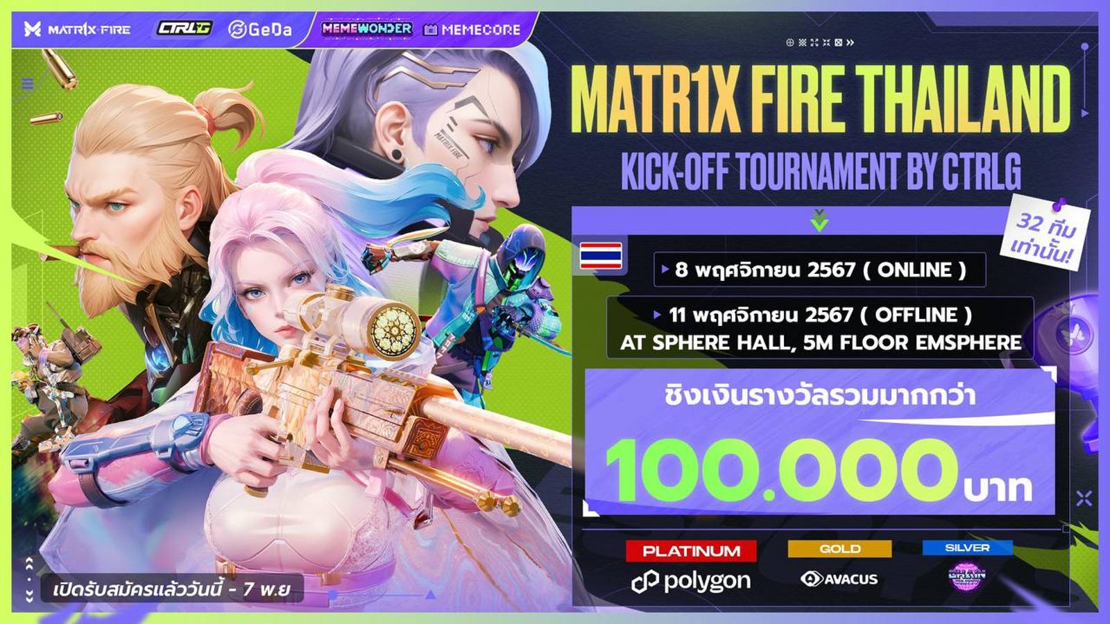 Get ready for MATR1X FIRE Esports Tournament by CTRLG & GEDA over 100,000 baht prize pool. Join us to watch the competitive competition qualified of top 8 teams in Matr1x fire Thailand ! featuring with the top streamers SuperBuss , Boomborapha , Elizent and Peerapong ! Don’t miss the big esport tournament in web3 , who will be the champion?