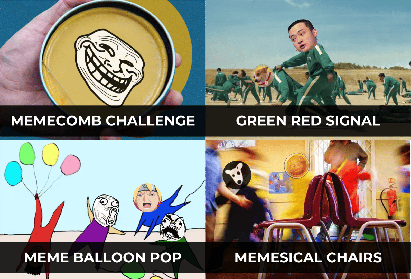 Take part in meme-inspired games like the Memecomb Challenge, Green Red Signal, Meme Balloon Pop, and Memesical Chairs. Laughter and meme magic await!