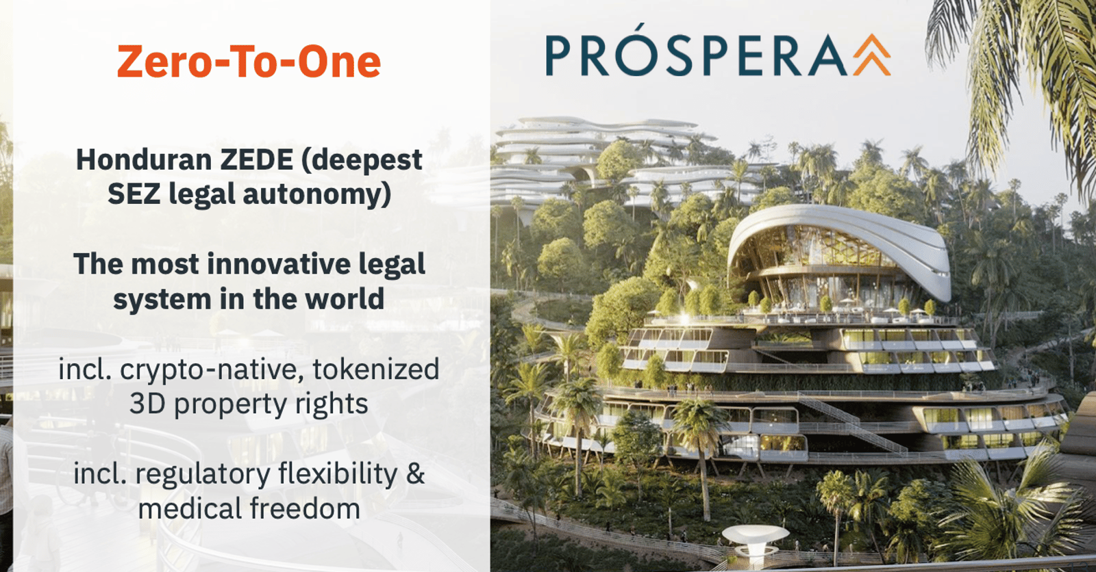 Prospera is the most advanced private charter city in the world. Prospera is similar to a Special Economic Zone, controlling its own civil code and business regulations — allowing for faster, more efficient advancement in science and technology.