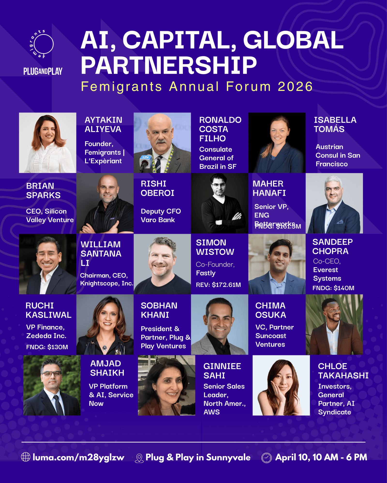 A special thank-you to Sanam (Amidi) Amidhozour — Chief Brand Officer, Plug and Play Tech Center (PNPTC), COO & Treasurer of the PNPTC Foundation, and Silicon Valley Business Journal’s 40 Under 40 (Class of 2025)—for supporting Femigrants’ mission and helping bring this forum to life.