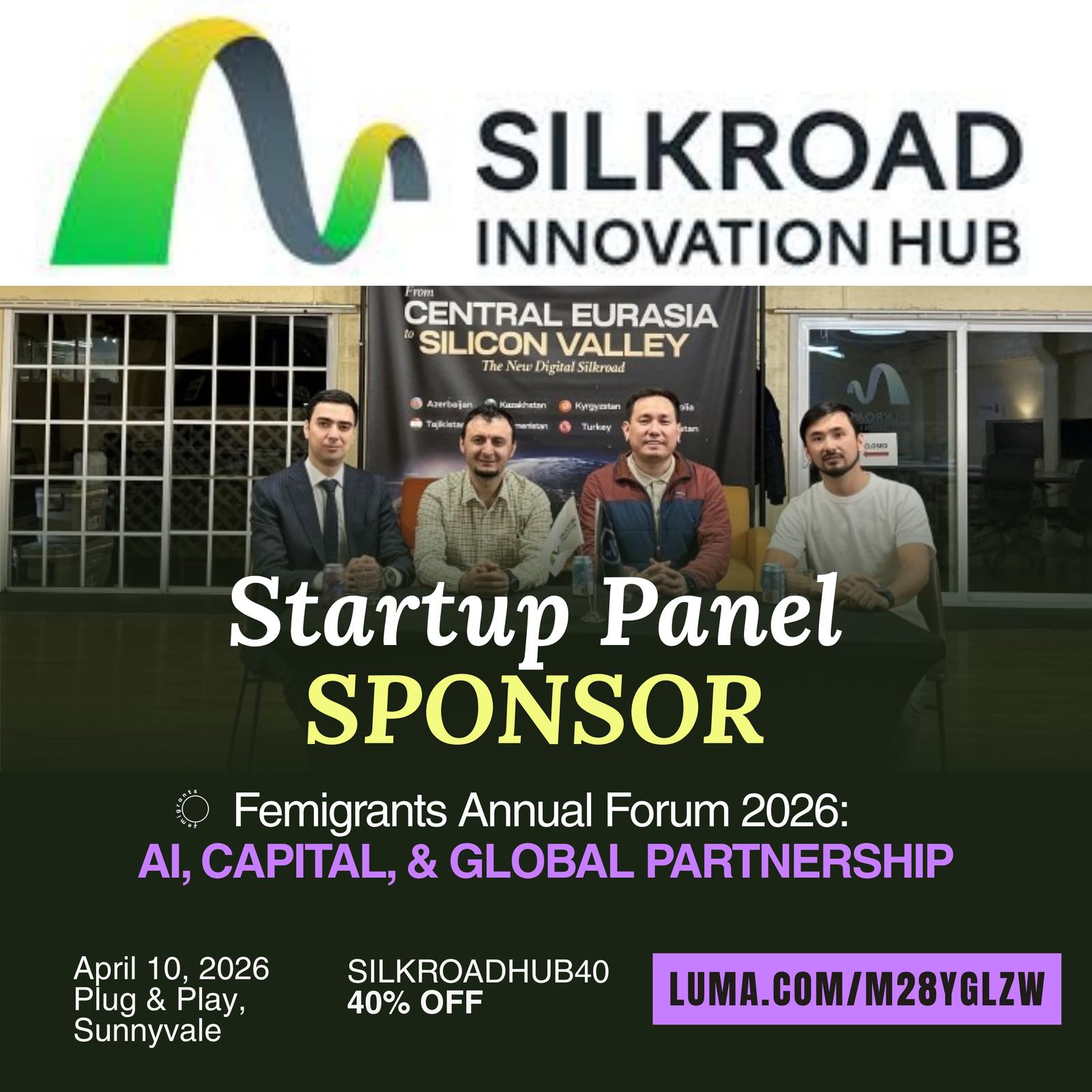 Silkroad Innovation Hub is the official sponsor of the Startup Panel at the Femigrants Annual Forum 2026. Special thanks to Asset Abdualiyev, Founder & CEO of Silkroad Innovation Hub, for supporting Femigrants Foundation and our mission to empower global founders and tech leaders.