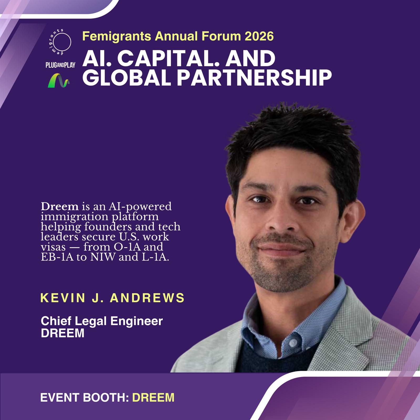 Dreem is an AI-powered immigration platform helping founders and tech leaders secure U.S. work visas — from O-1A and EB-1A to NIW and L-1A. Visit Dreem's event booth and connect with Kevin at the forum for a complimentary case assessment.