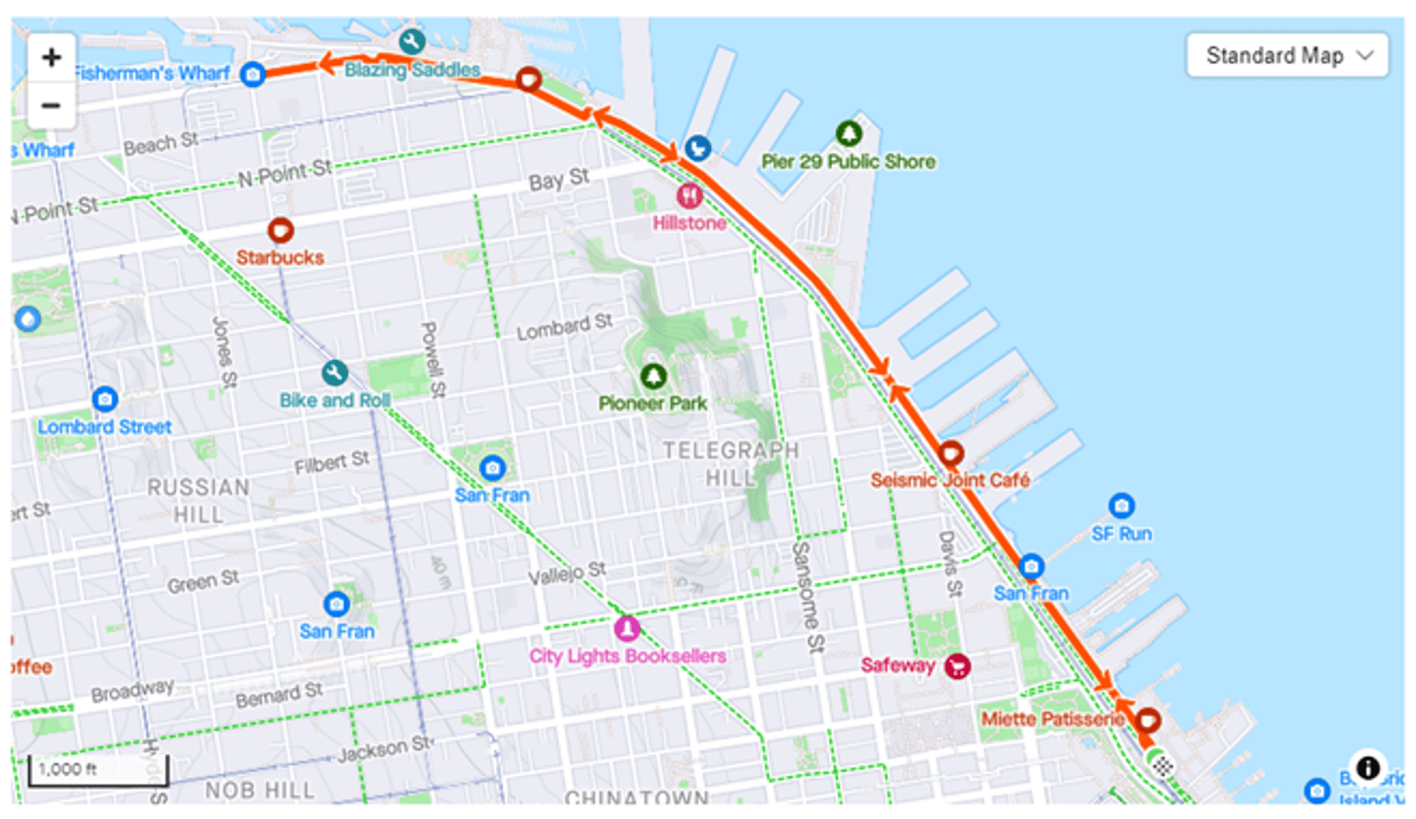 · 6:40 AM — Meet by the Ferry Building. Quick hellos.
