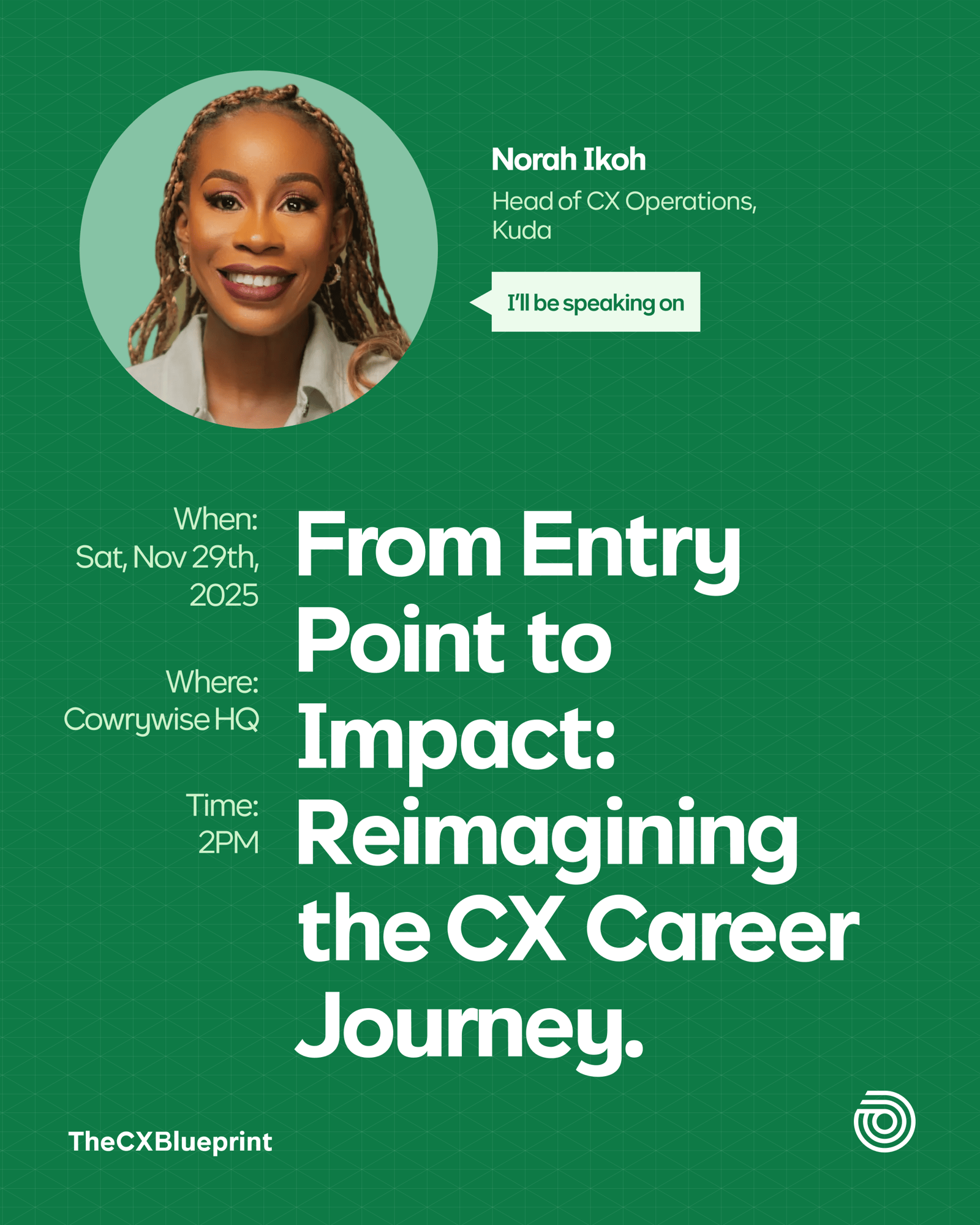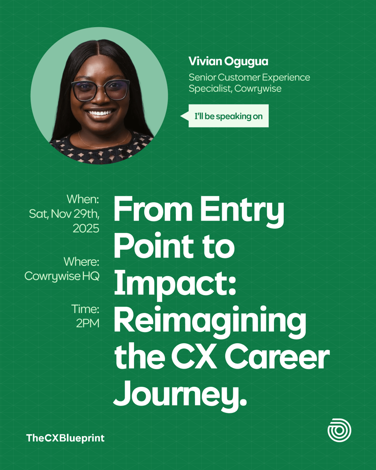 Join us at CX Blueprint, a monthly series hosted by Cowrywise in Lagos. This event brings together some of the brightest minds in Customer Experience from a variety of industries, all eager to share the strategies, tools, and real-world stories that have helped them deliver exceptional results.