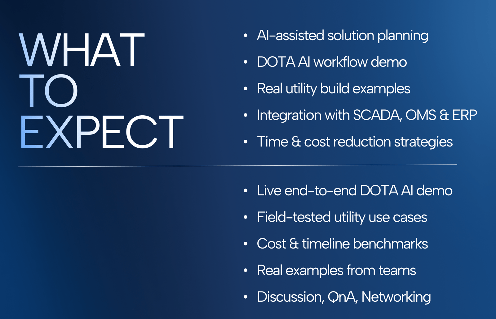 You'll hear from the team behind 250+ deployed solutions at utilities across North America, including a live demonstration of the DOTA AI workflow from start to finish.