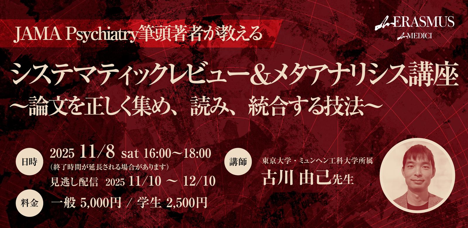 【JAMA Psychiatry筆頭著者が教える】 システマティックレビュー&メタアナリシス入門 ~論文を正しく集め、読み、統合する技法~