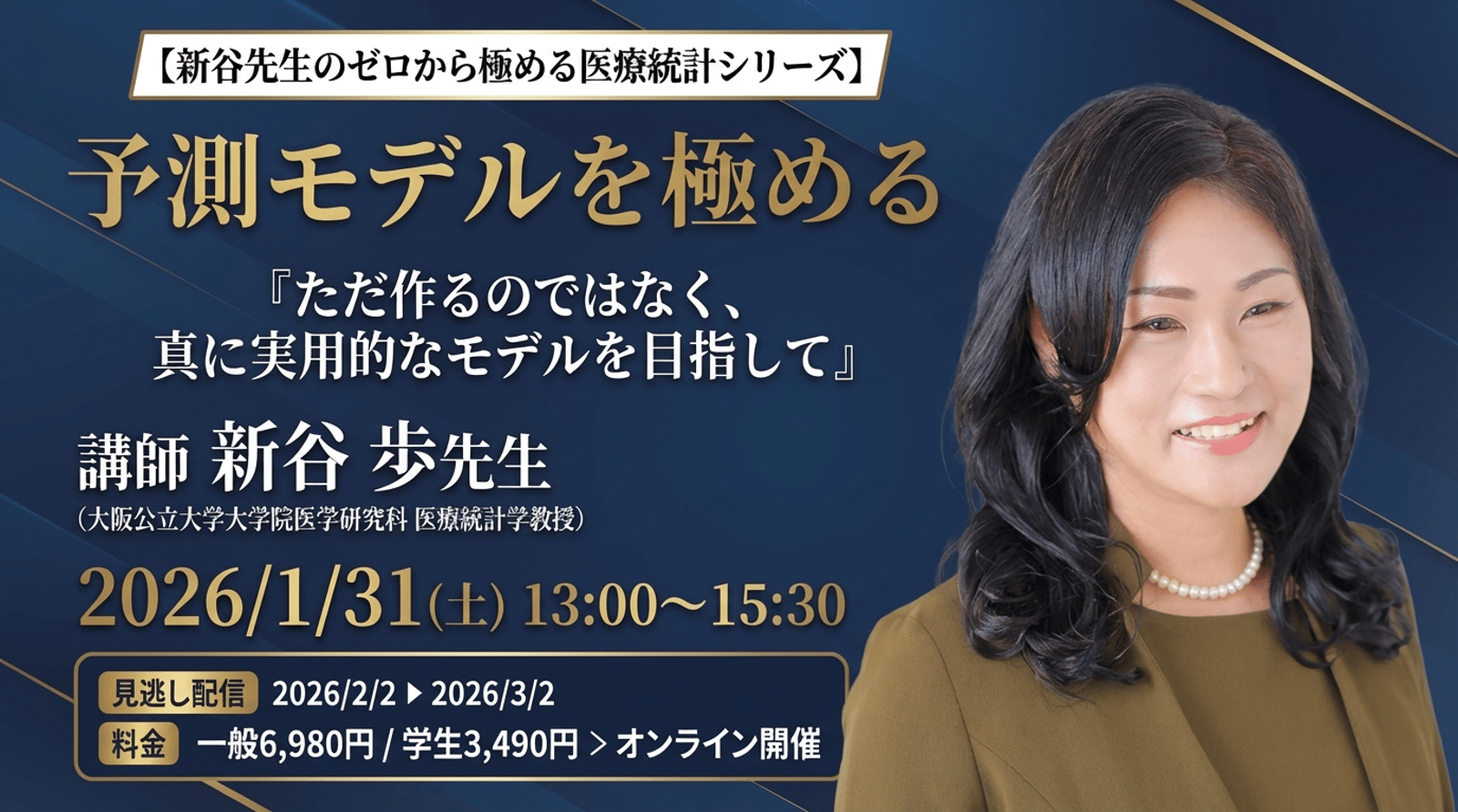 ※今回は本講義と【第8回】生存時間解析を極める講座がセットになったお得なチケットもご用意しております。詳細はページ下部〈セットチケットについて〉をご覧ください。