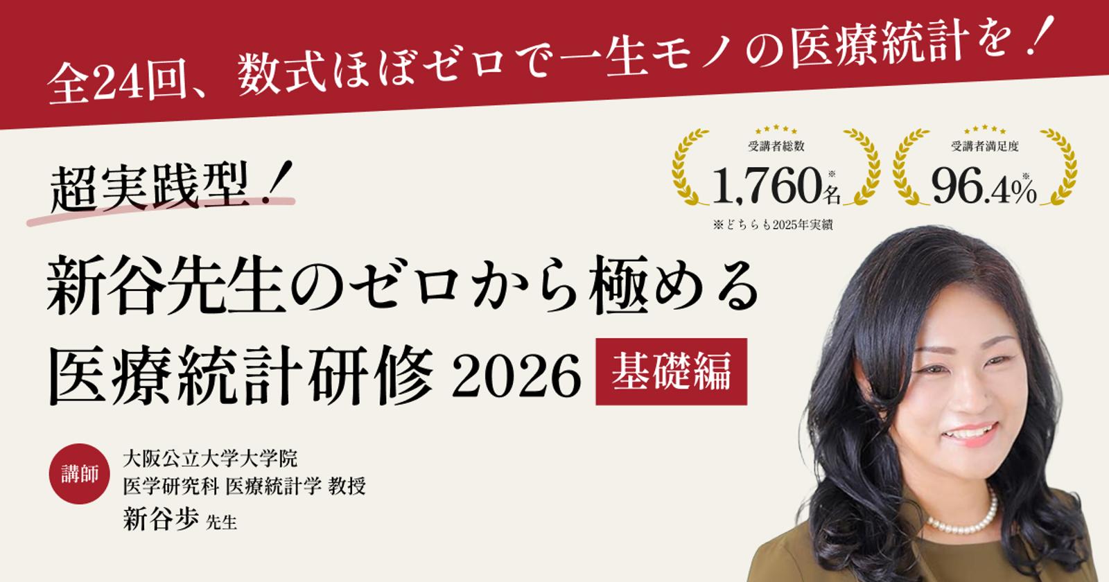 今回は、「数式ほぼゼロで、一生モノの医療統計を!」をテーマにした【超実践型 新谷先生のゼロから極める医療統計研修 2026 基礎編】と題して1年間の講座を開催します。