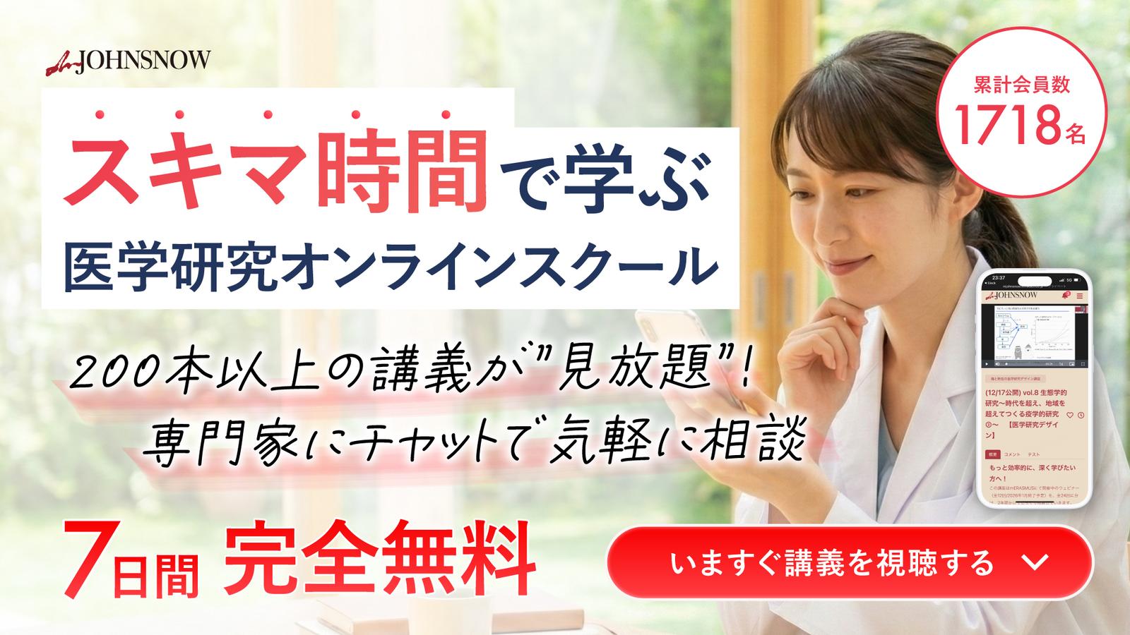 mJOHNSNOWはスペシャリストが提供する医学研究講座にスマホで、スキマ時間にアクセスできる日本最大規模のオンラインスクールです。