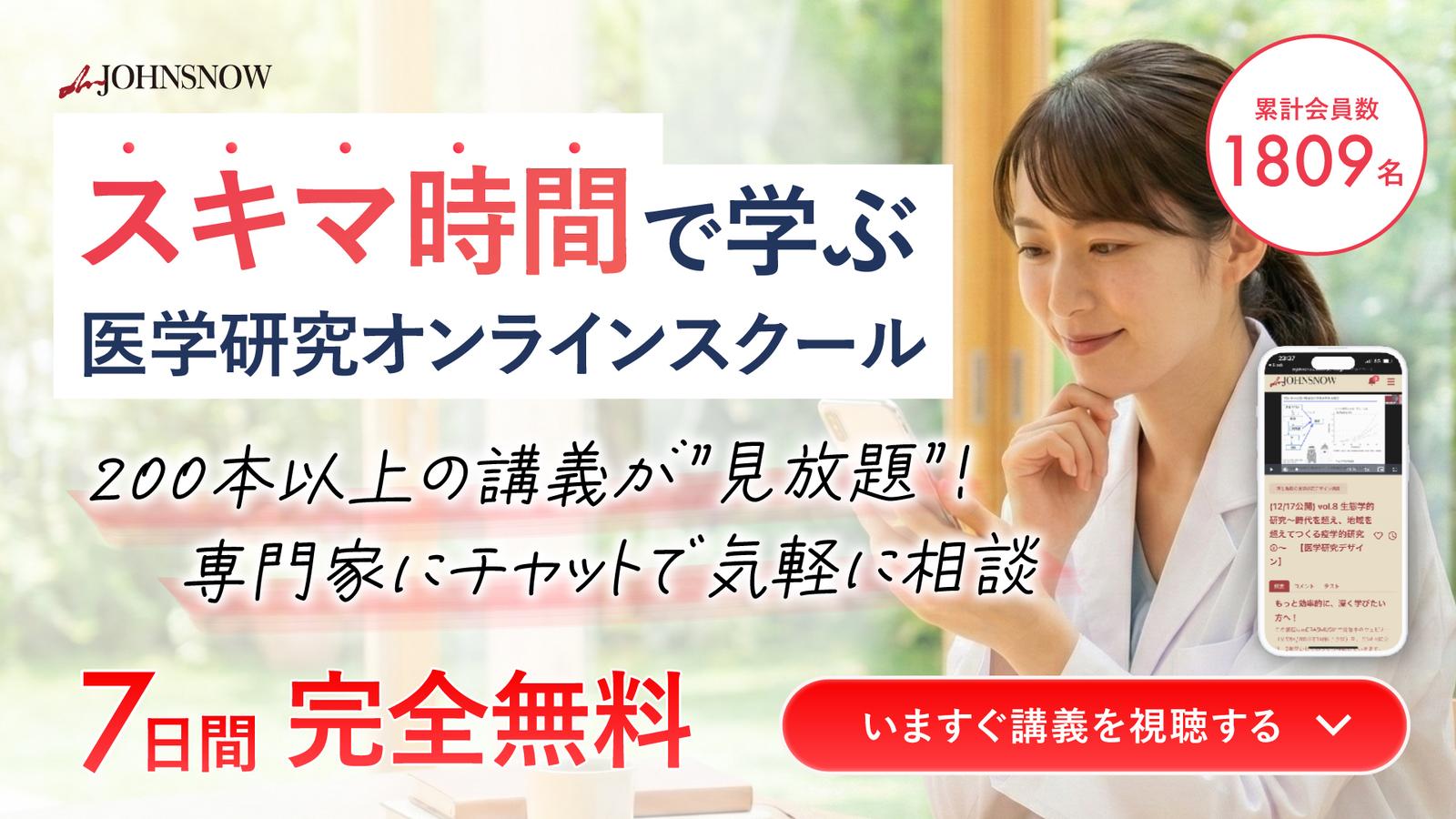 mJOHNSNOWはスペシャリストが提供する医学研究講座にスマホで、スキマ時間にアクセスできる日本最大規模のオンラインスクールです。