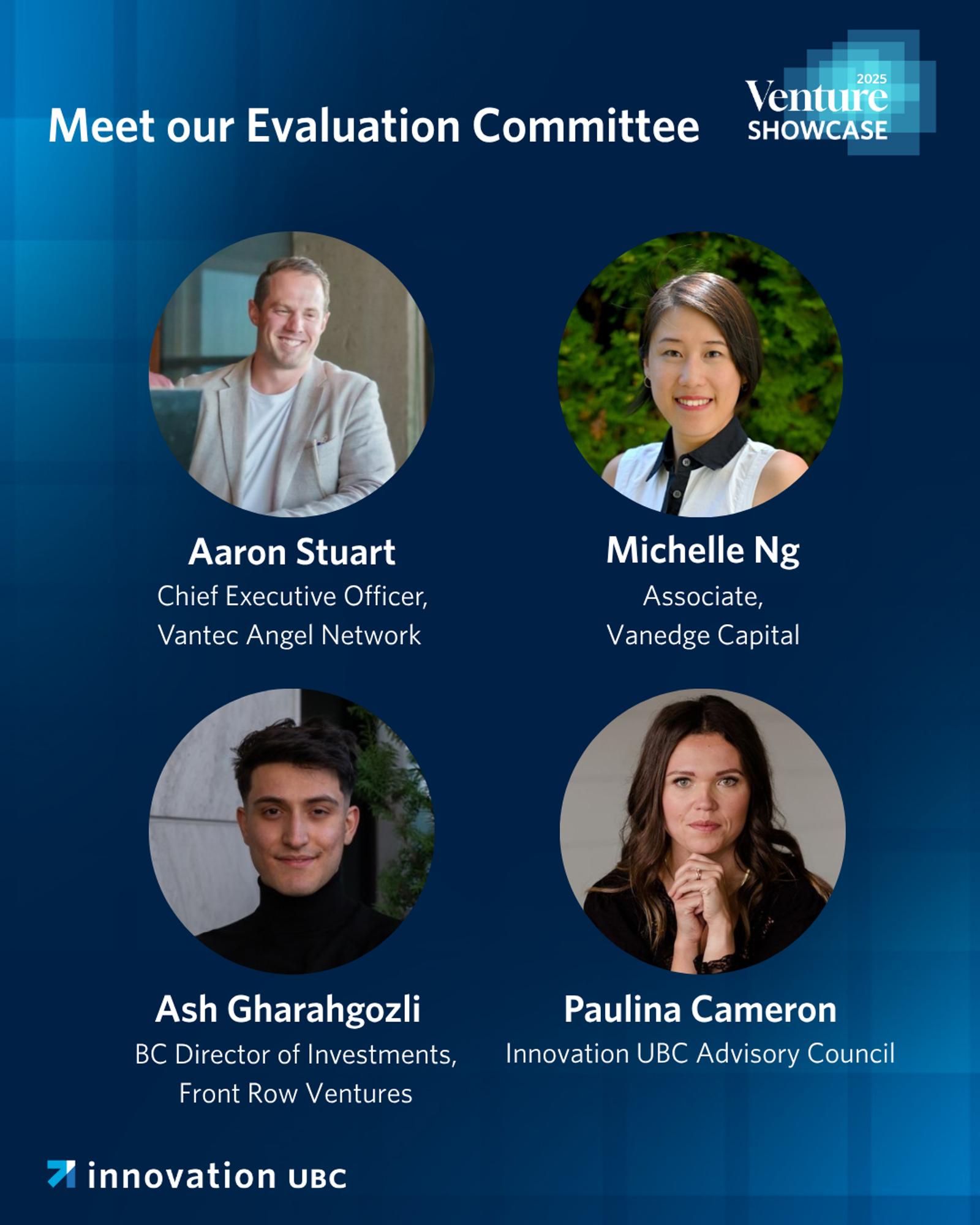 The final line up of ventures was selected by our external Evaluation Committee composed of investors and Innovation UBC's Advisory Council.