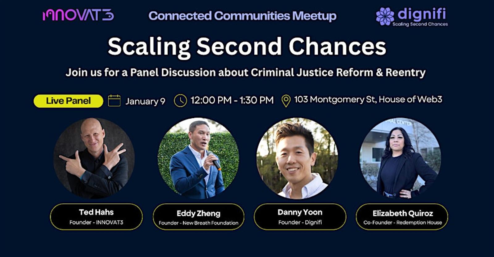 Join us Friday, January 9, at the House of Web3 in the Presidio for the monthly INNOVAT3 Connected Communities Meetup with Dignifi, focused on Innovative Solutions for the Reentry Community.